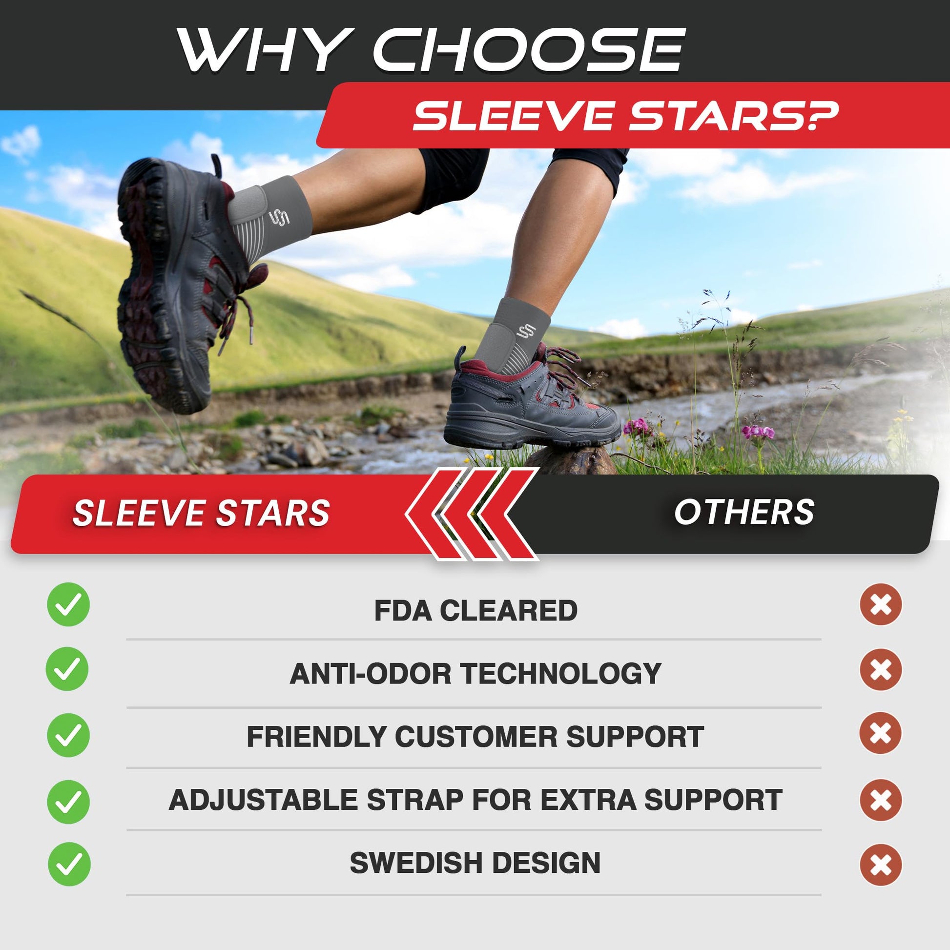 - β Great ankle compression: Whether recovering from home, working all day long, or out playing sports, this ankle stabilizer for women will support your feet comfortably by providing targeted and adjustable compression that helps increase blood flow. Experience achilles tendonitis relief with Sleeve Stars now!