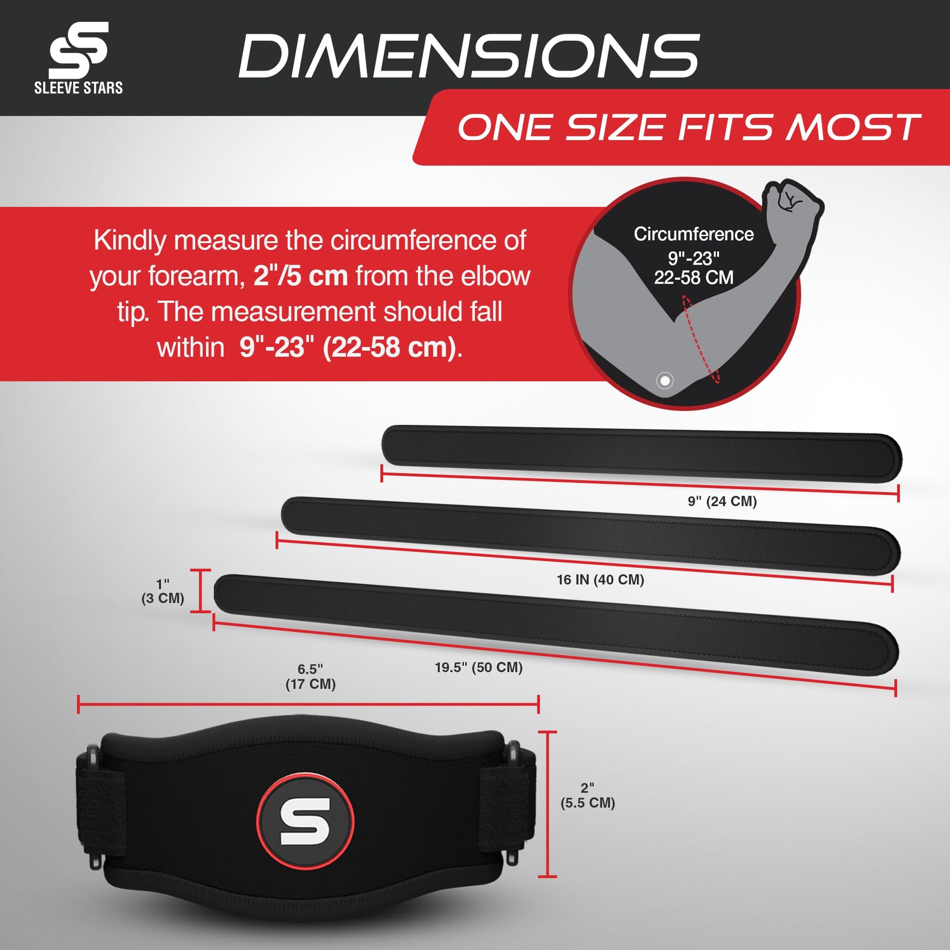 Sleeve Stars Tennis Elbow Brace for Men & Women, Tendonitis Elbow Brace & Strap Golfers Elbow Brace Counterforce Band for Tendon Pain Relief & Support for Forearm w/ 3 Straps Fits 9-23" (Single/Black)