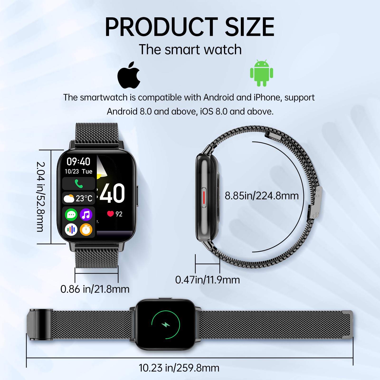 - 【24/7 Health Monitoring - Heart Rate/Sleep Tracking】This smartwatch can monitor heart rate and sleep 24/7, Analyze sleep stages (Deep sleep/Light sleep/REM sleep), generate health reports through the app, and help you optimize your daily lifestyle. It is very helpful for tracking women's health cycles.