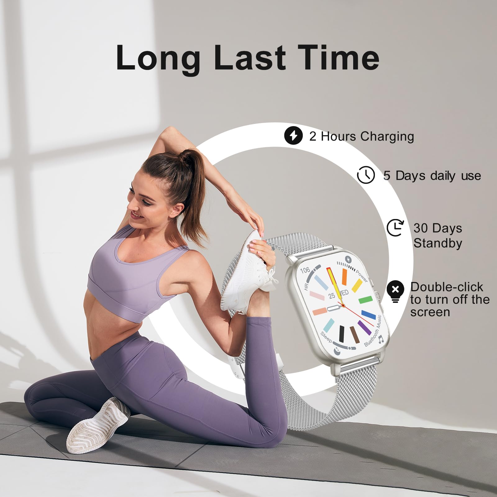 - 6.【Long-lasting Battery】The battery capacity of this women/men`s smart watch is 250mAh, only 2 hours to get full charged, supports up to 5 days daily use, 30 days standby time, it`s very convenient without frequent charging.