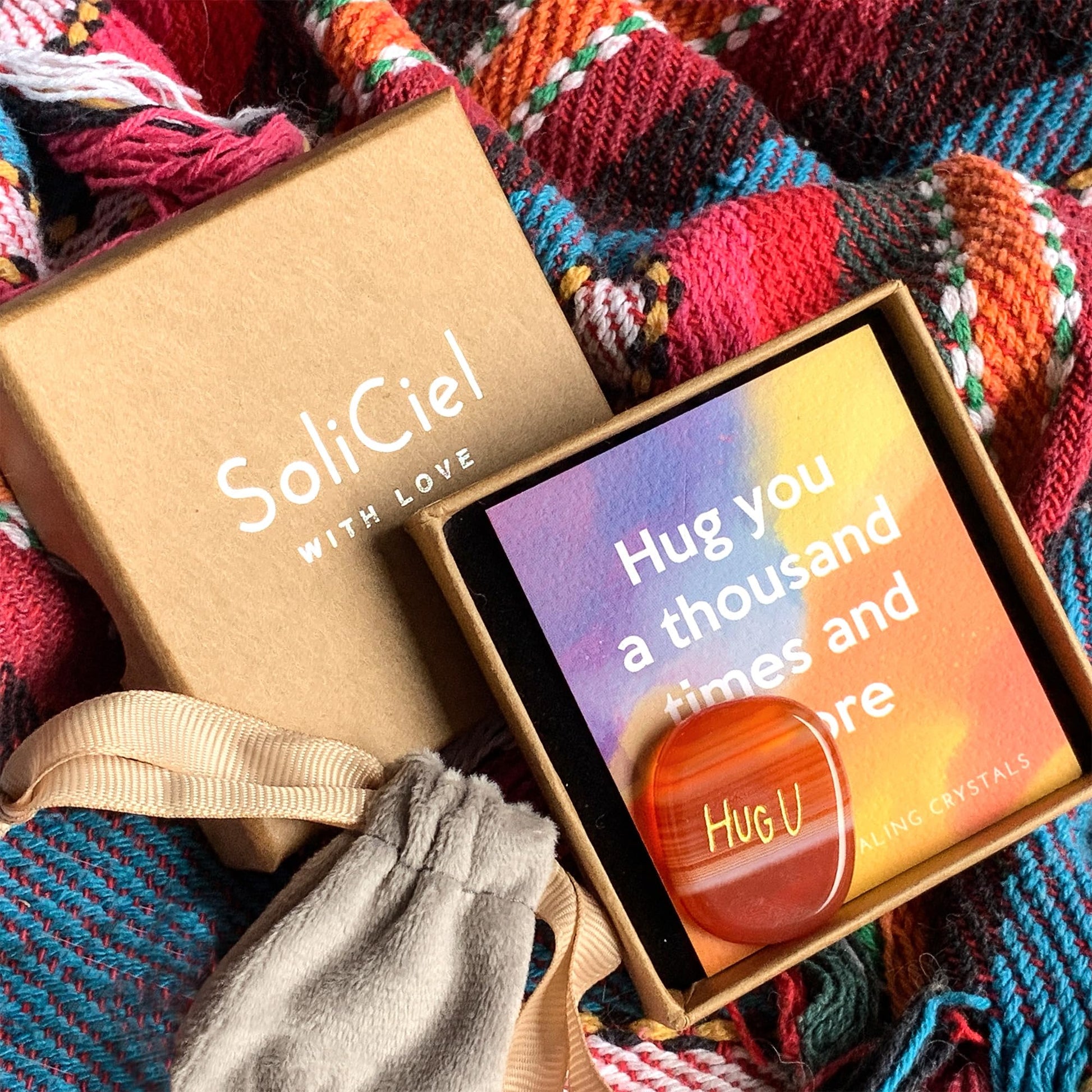 SOLICIEL Agate Crystal Pocket Hug, Get Well for Best Friends, Long Distance, Thinking of You for Women & Men, Easter Basket Fillers