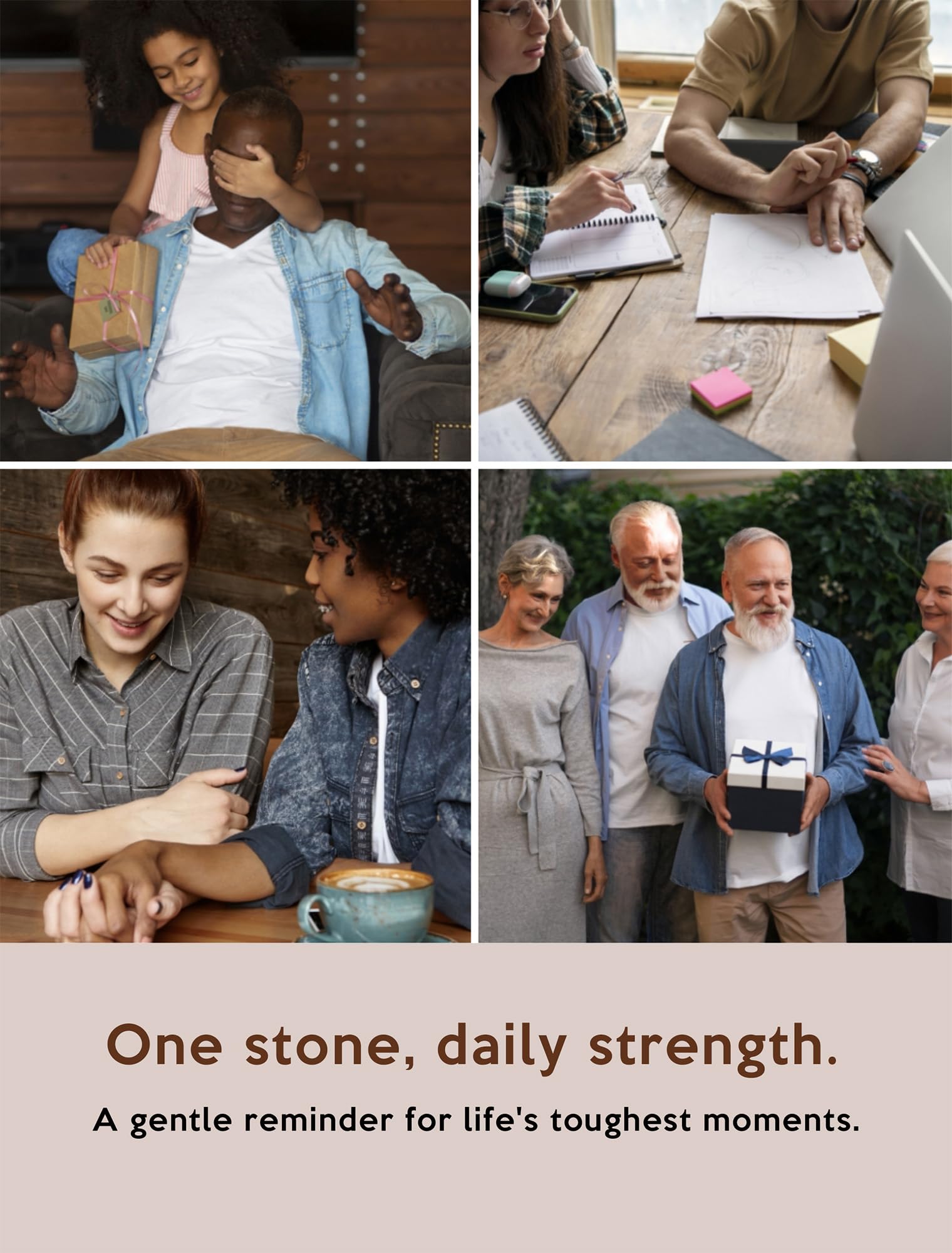 - BEAUTY IN IMPERFECTION: Every natural gem stone has its own little dents and imperfections, and each of the worry stones has slightly different shape and color. This uniqueness resonates with the meaning they convey: One Day at A Time, it is Okay to be imperfect