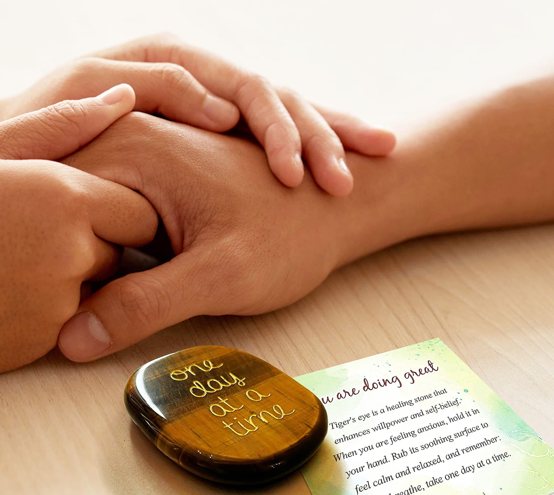- IN POCKET THERAPY: Tiger's eye is a healing stone that inspires willpower and self-belief. A simple yet effective way to calm yourself when anxiety and stress strike. It is a caring token for yourself or those who need your support and love. Suitable as a little encouragement gesture for your colleague or friend, an uplifting present for a hospital visit, or a simple thinking of you heartwarming item that aids mental health and meditation for your son, daughter, husband, or wife