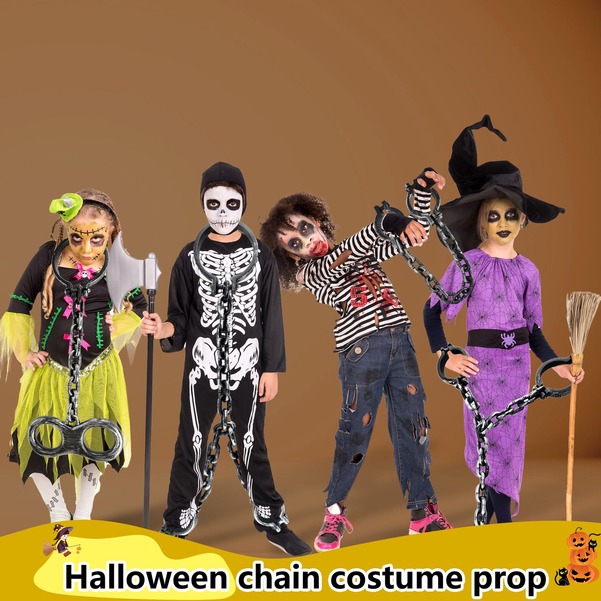 - What you will get: You will receive 1 upper body shackle, 1 hand shackle chain, 1 hand neck shackles chain and 1 hand feet shackles chain, let's enjoy a happy Halloween party together