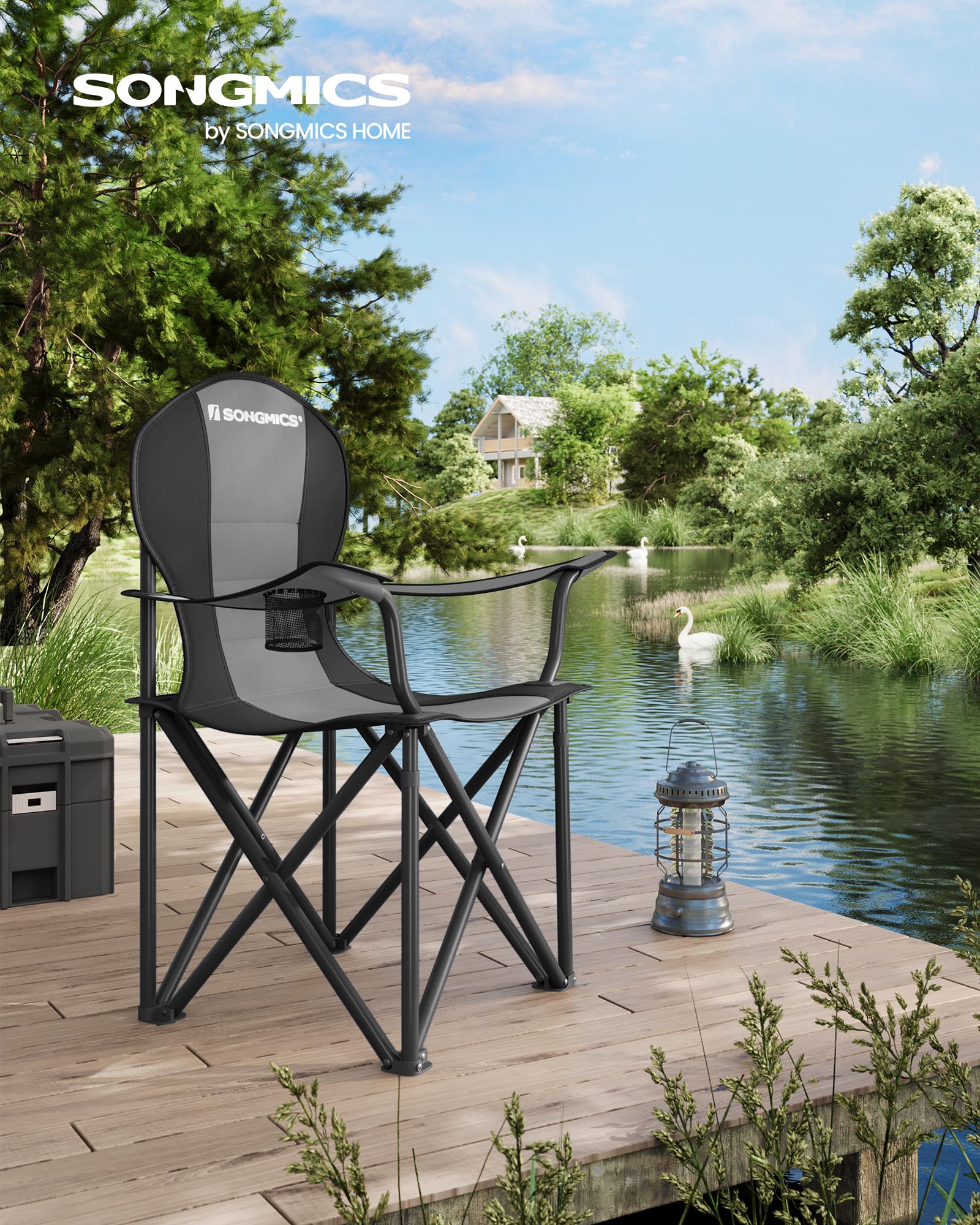 SONGMICS Folding Camping Chair Set of 2, Supports 551 lb per Chair, with Comfortable Sponge Seat, Heavy Duty Structure, Cup Holder, Outdoor Picnic Chair, Grey and Black UGCB206G01