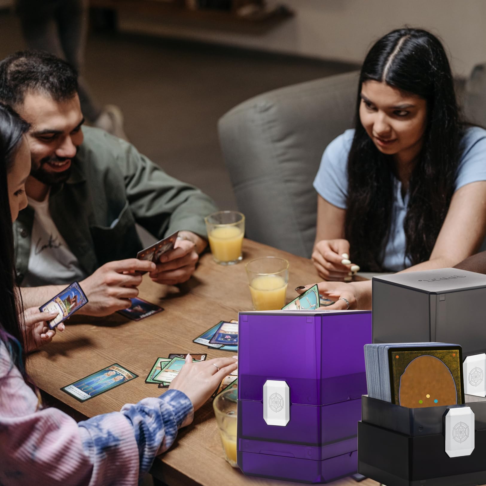 Sooez Heavy Duty MTG Deck Card Box with Dice Storage, 100+ Deck Case Boulder, Perfect Deck Holder for MTG Commander/YuGiOh/TCG and Sports Cards (Purple)