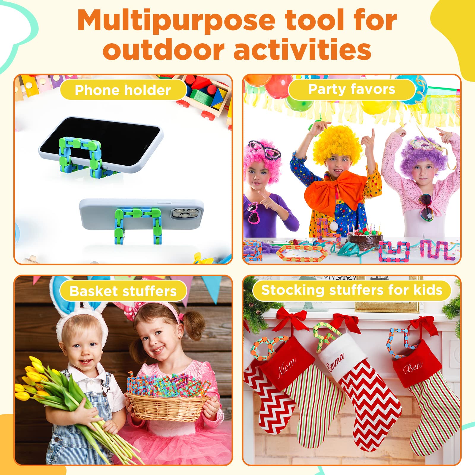 - Safe and Quality Material: the wacky tracks fidget toys are made of PP material, safe and reliable, sturdy and smooth for playing; When you snap the links together, they will make a clicking sound, there are 12 colors, multiple colors make it easier to match into more combinations
