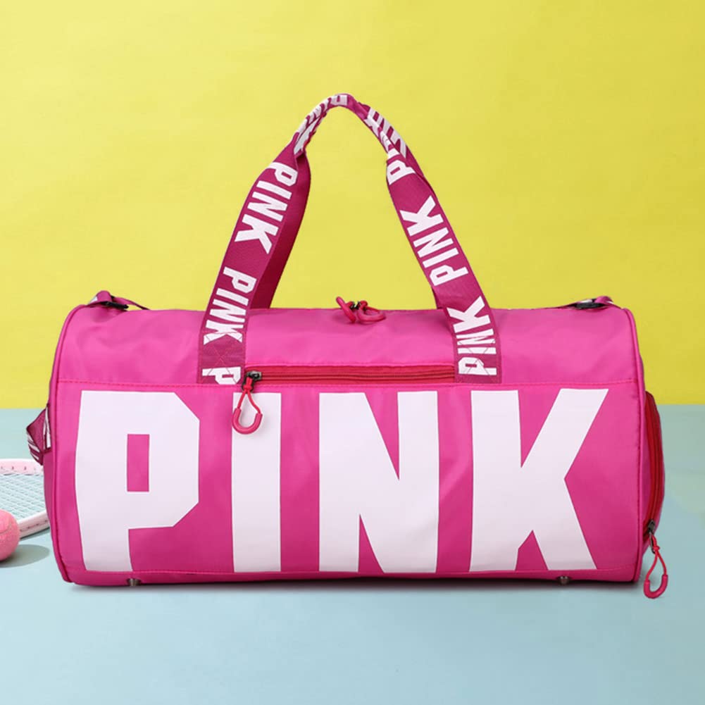 Sports Gym Bag, Travel Duffle Bag with PINK printing, Shoulder Tote Bags Weekend Bags for Workouts, Travel, Hiking, Perfect for Mom's Gifts
