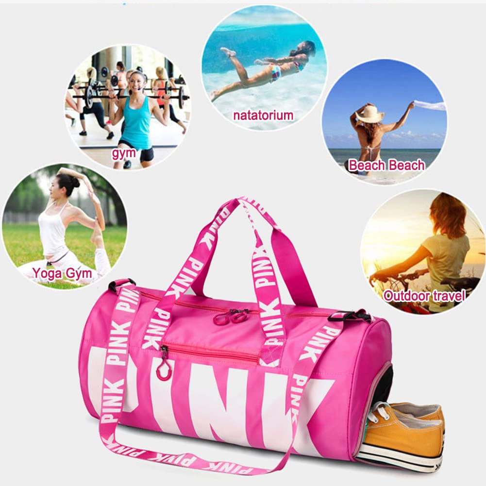 - 【Versatile】This fashion PINK Travel Duffle gym bag is also good choice as handbag, carrying bag, with detachable shoulder strap as a shoulder bag, gym tote bag. The practical loop on the side is used on suitcases or trolley.
