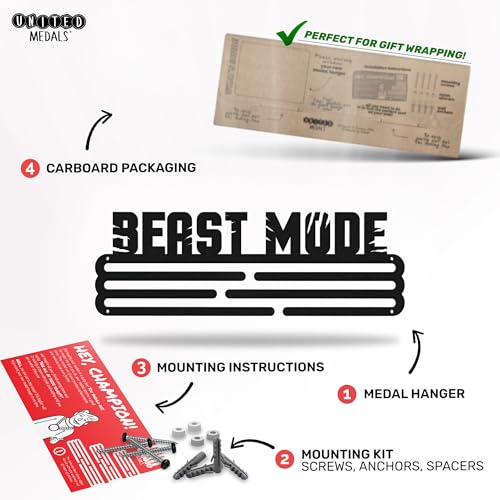 Sports Medal Hanger Display Race Beast Mode | Black Race Medal Holder Awards Wall Mount | Running Marathon Race Medal Display for Wall | Steel Medal Holder for Wall Holds up to 30 Medals