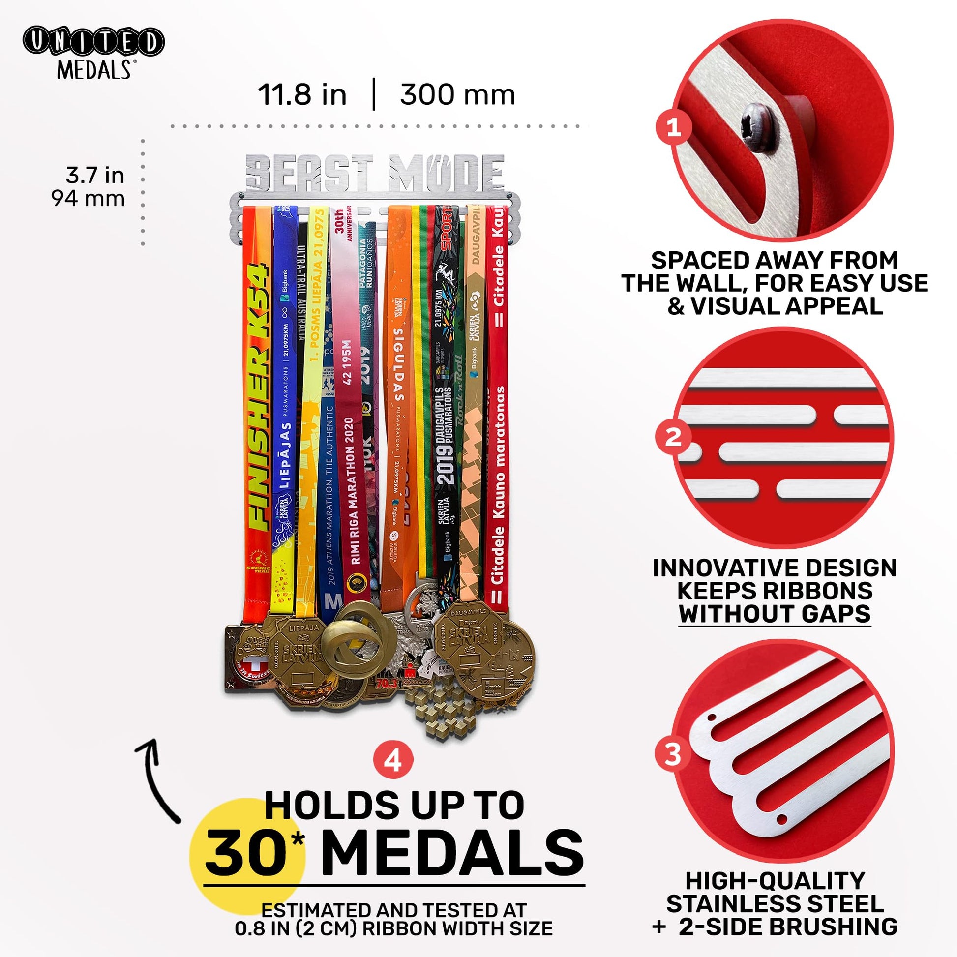 Details: United Medals BEAST MODE medal display hanger is the best place for your race medals and competition awards!