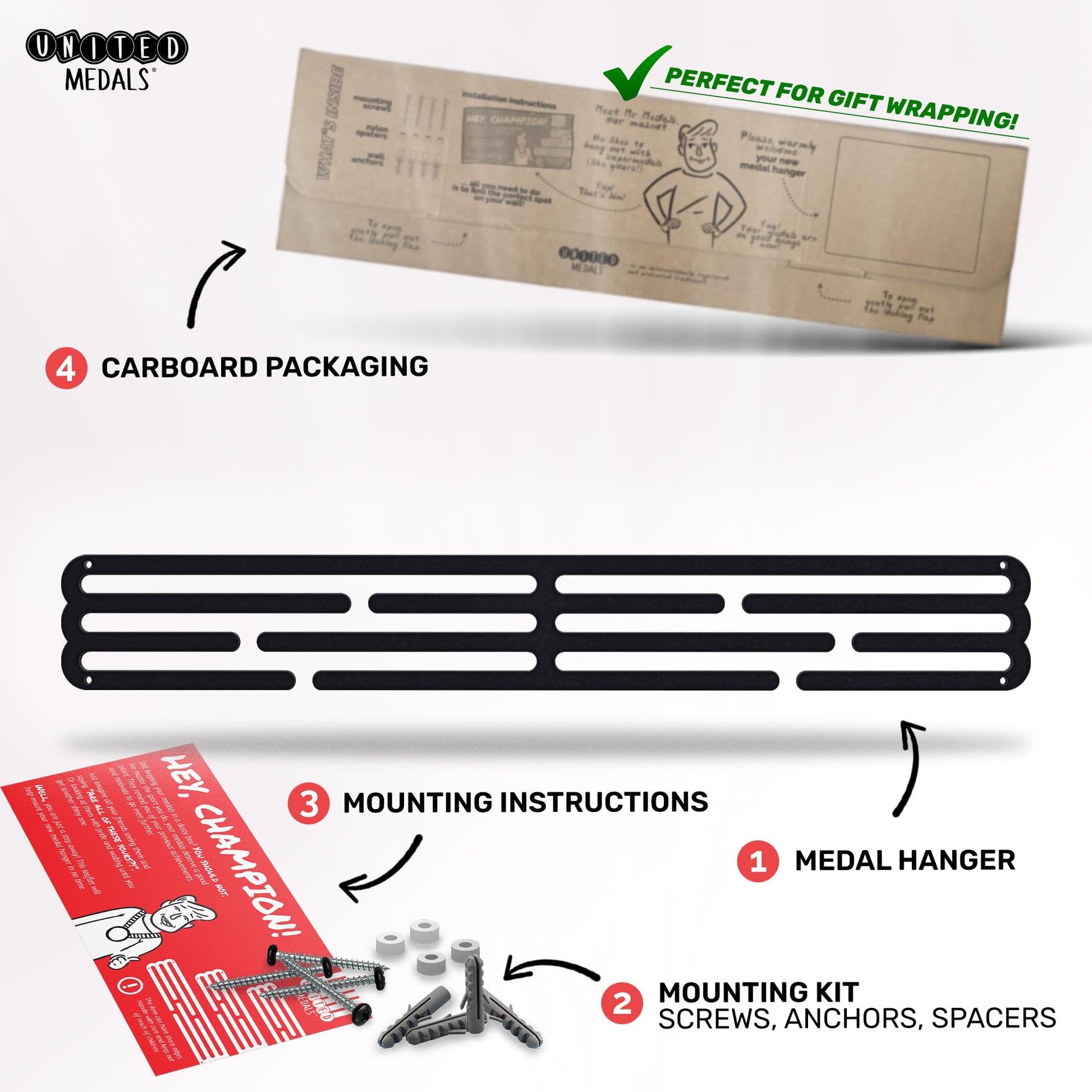 - HIGH QUALITY: All award medal hanger displays for your medals are designed by the creative United Medals brand team. Medal hangers are produced using high-quality steel and modern laser cutting machinery, allowing to create unique and precise design elements.