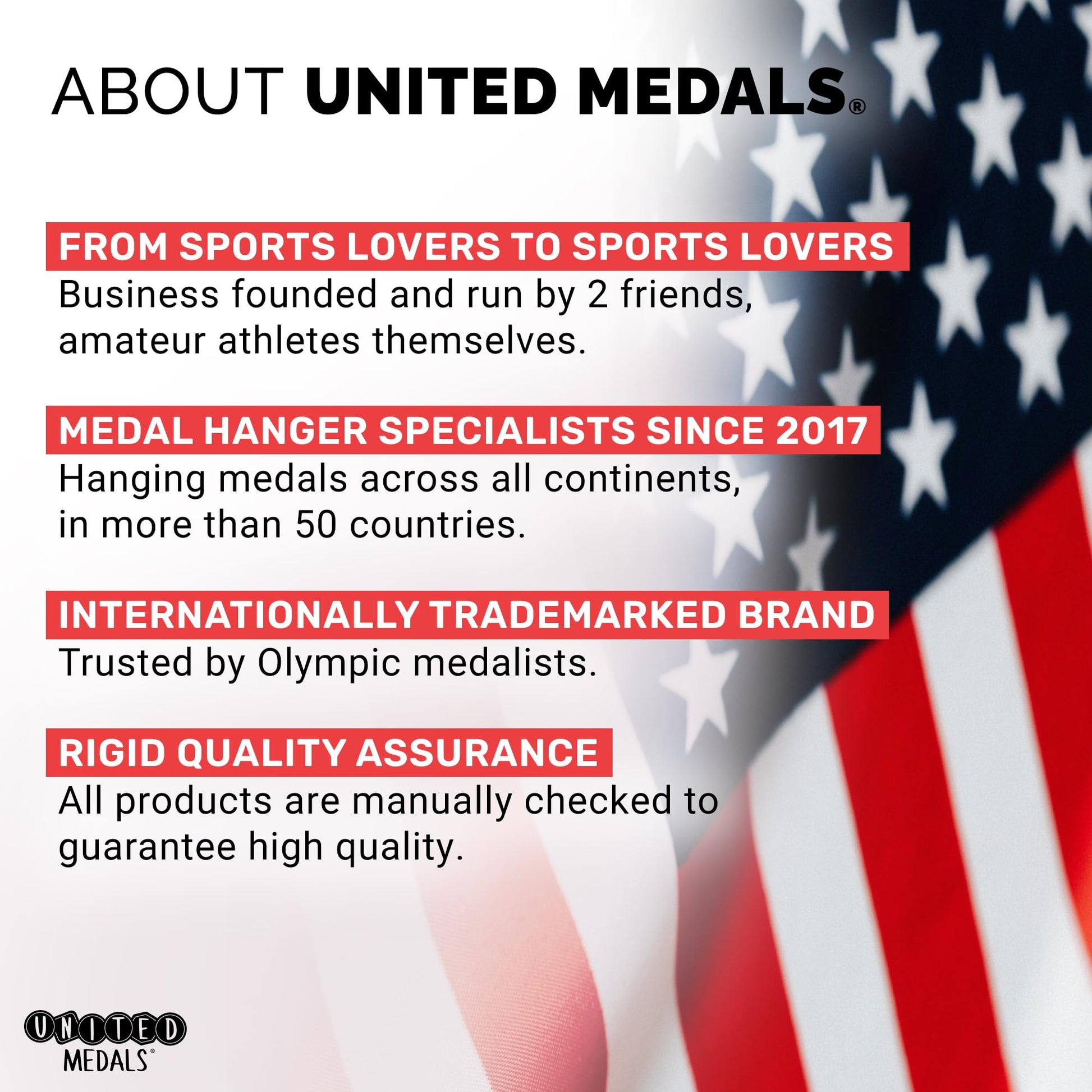 - BRAND: United Medals was founded in 2017 by two friends, who happened to be amateur athletes (in running and cycling). Now we are an international brand that produces premium-quality steel medals hangers for sports enthusiasts and athletes. We have shipped our items to all continents (except Antarctica) and more than 50 countries. We value high product quality and superb customer service, hence, if you have any questions or you are not satisfied with your medal rack display, please contact us.