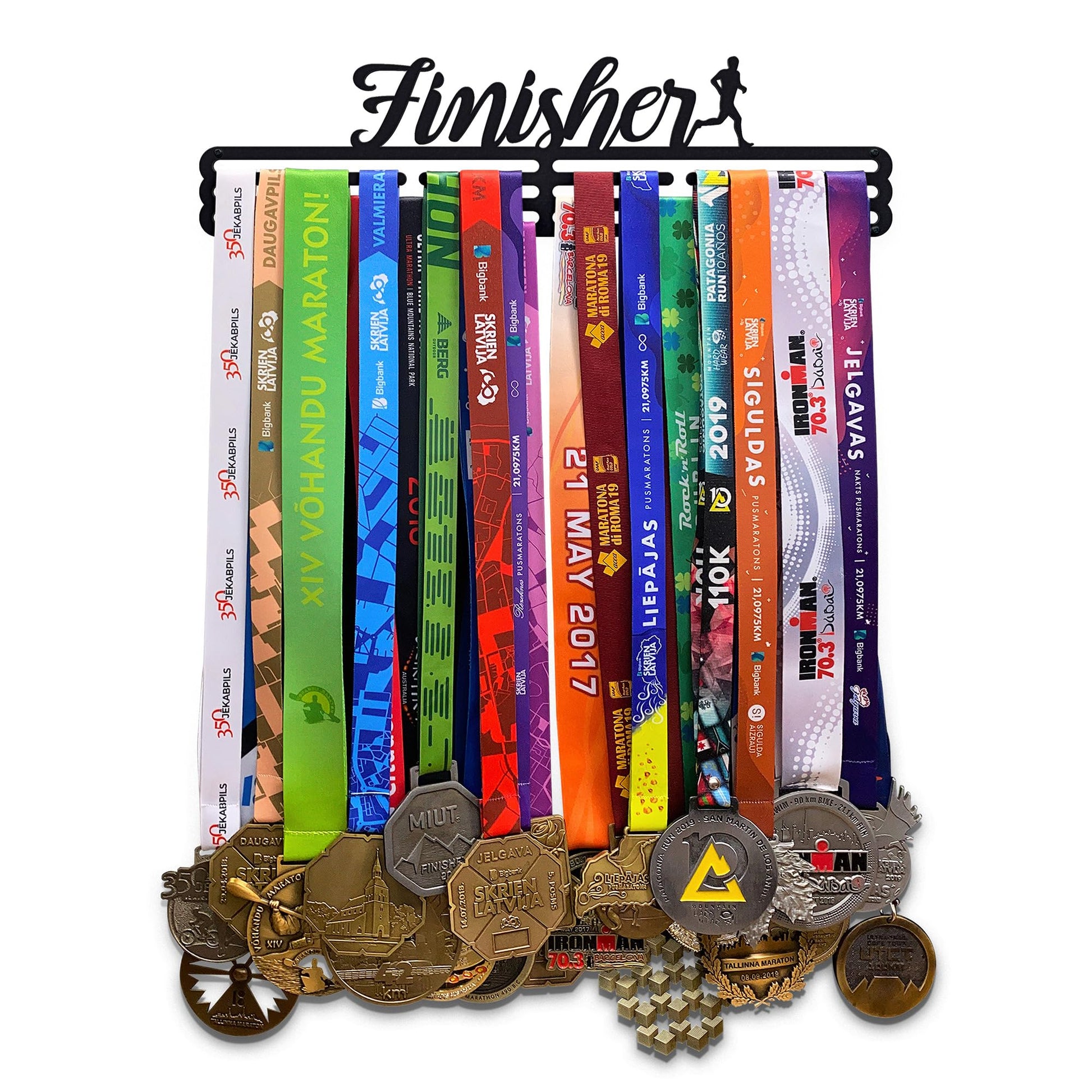 Sports Medal Hanger Display Race FINISHER | Black Race Medal Holder Awards Wall Mount | Running Marathon Race Medal Display for Wall | Steel medal holder for wall holds up to 48 Medals
