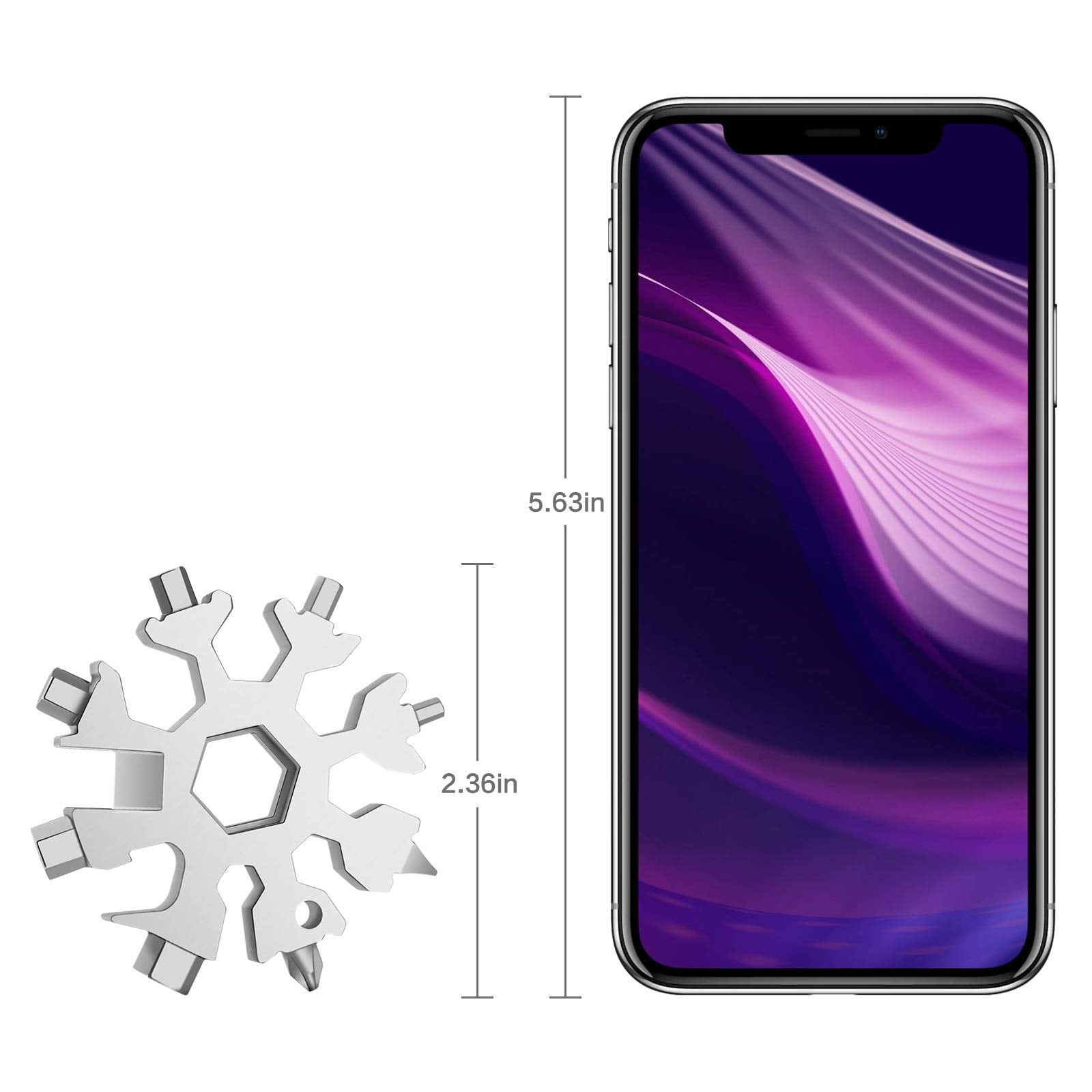 - Space Saver Multi Tool: The mens stocking stuffer snowflake multitool is small (2.3 ' diameter) , but not too heavy (2.8 oz) connected to keychain or backpack with the included carabiners and keyrings. The 18 in 1 snowflake multitool can be used in travels, outdoor adventures, sports, camping, rescues...