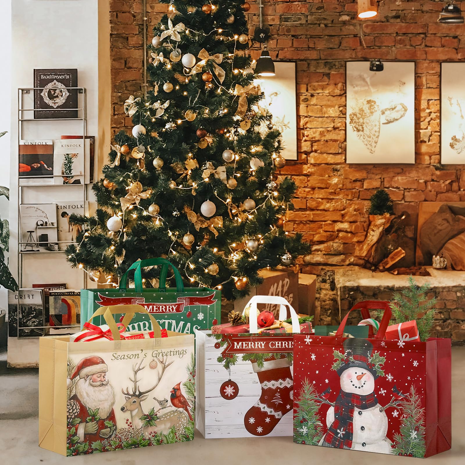 - ๐๐ก๐ซ๐ข๐ฌ๐ญ๐ฆ๐๐ฌ ๐๐ข๐๐ญ-๐๐ซ๐๐ฉ๐ฉ๐ข๐ง๐ ๐๐๐ญ: This collection includes 12 extra-large vintage-style Christmas gift bags (16.9' x 12.6' x 6.7'). Each bag is amply sized to hold substantial presents and comes in a selection of four traditional Christmas hues, adding a classic touch to your festive wrapping.