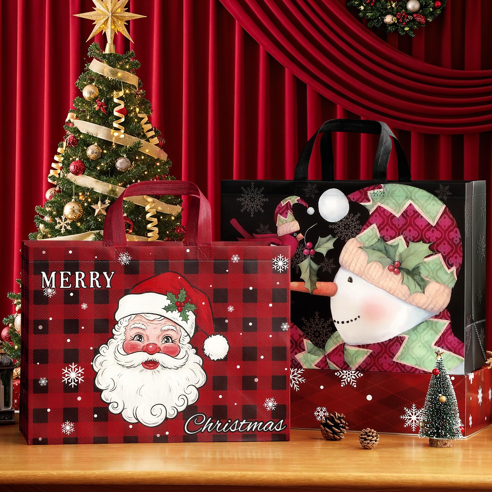 - ๐๐๐จ-๐๐ซ๐ข๐๐ง๐๐ฅ๐ฒ & ๐๐ญ๐ฎ๐ซ๐๐ฒ: Made from premium non-woven fabric, our Christmas bags offer an eco-conscious choice without sacrificing quality, featuring waterproof and moisture-resistant properties. Their reinforced handles and durable seams ensure longevity and comfortable carrying.