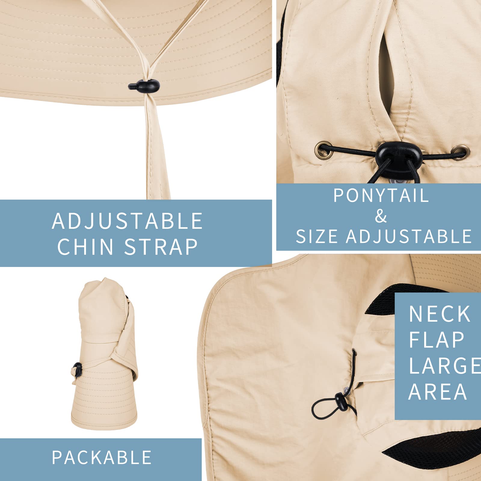 - PERFECT SUN PROTECTION FOR HEAD AND NECK – The outdoor hat has a large wide brim and neck flap to protect you from the blazing sun at all angles. The hat is rated for 50+ UPF to protect against harmful UVA and UVB rays, offering complete UV protection for your face, ears, and neck.