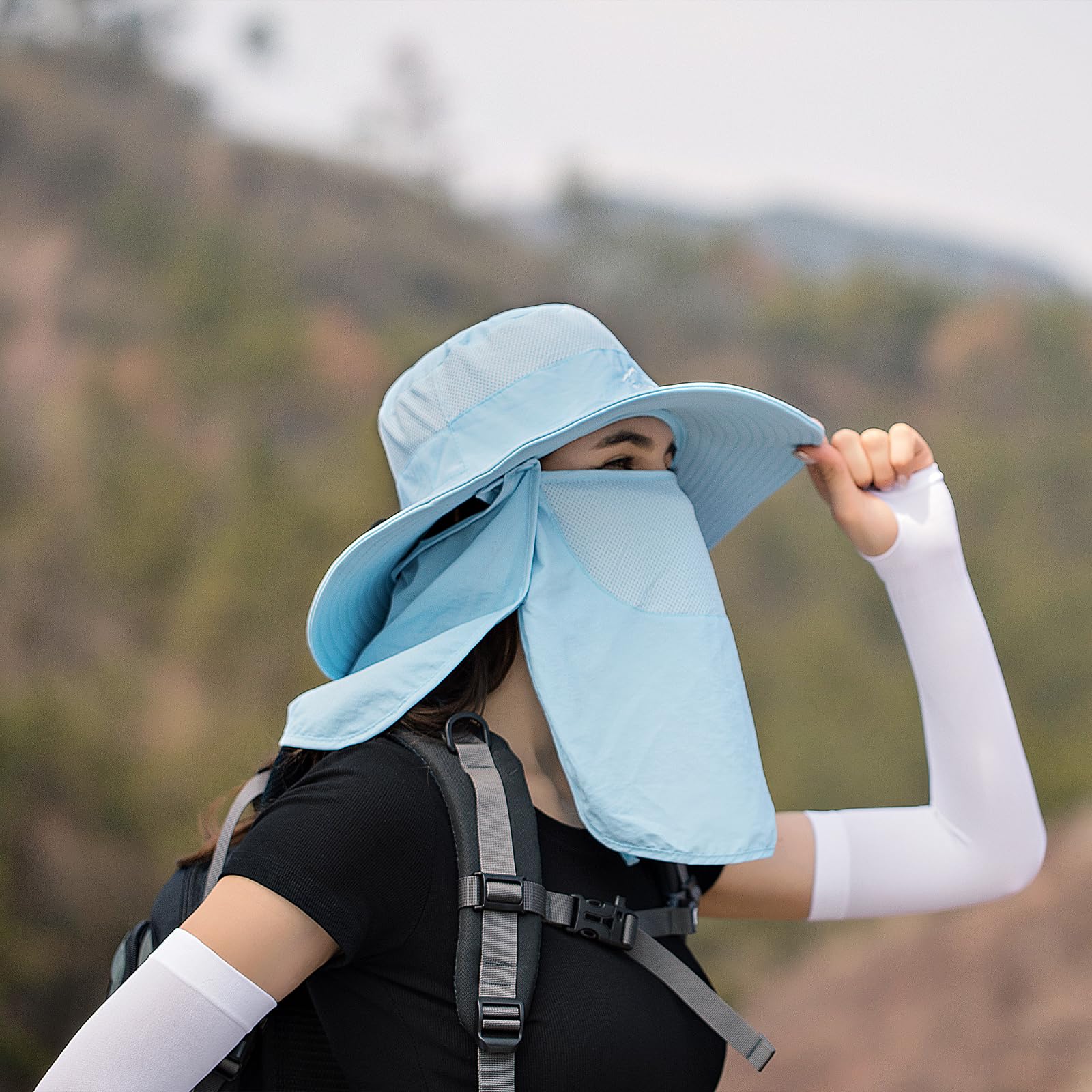 - 【Protection & Detachable】This sun hat combined with wide brim, face & neck flap (flap are removable) Which can keep the sun off your head, face and neck. adjustable chin strap to ensure that the hat can maintain comfortable conditions even in strong winds.