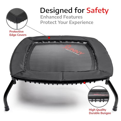 Sunny Health & Fitness Springless Mini Fitness Trampoline – Premium Adjustable Bungee-Style Indoor/Outdoor Exercise Rebounder for Quieter and Safer Workouts (36”) - SF-S021047