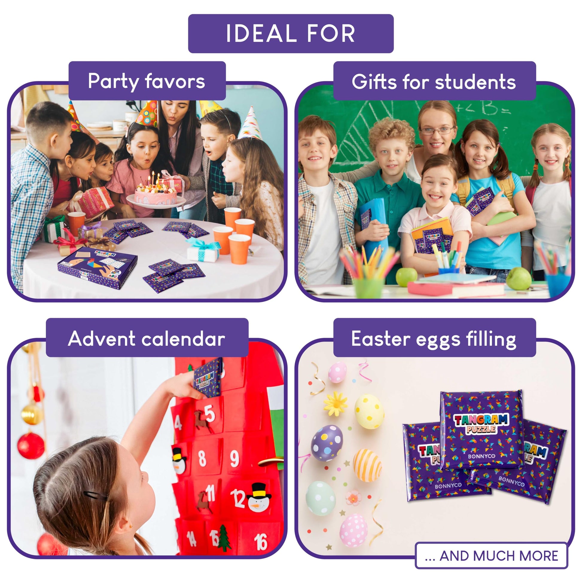- 🧩 BIRTHDAY FAVORS FOR KIDS 🧩 Ideal tangrams as goodie bag stuffers, pinata stuffers for kids parties, advent calendar fillers, communion favors for guests, kids wedding party favors, Easter egg fillers, classroom valentines gifts, rewards gifts for students from teachers, primary school student gifts at the beginning or end of term or academic year, classroom prizes for kids, stocking fillers kids, Christmas and other events