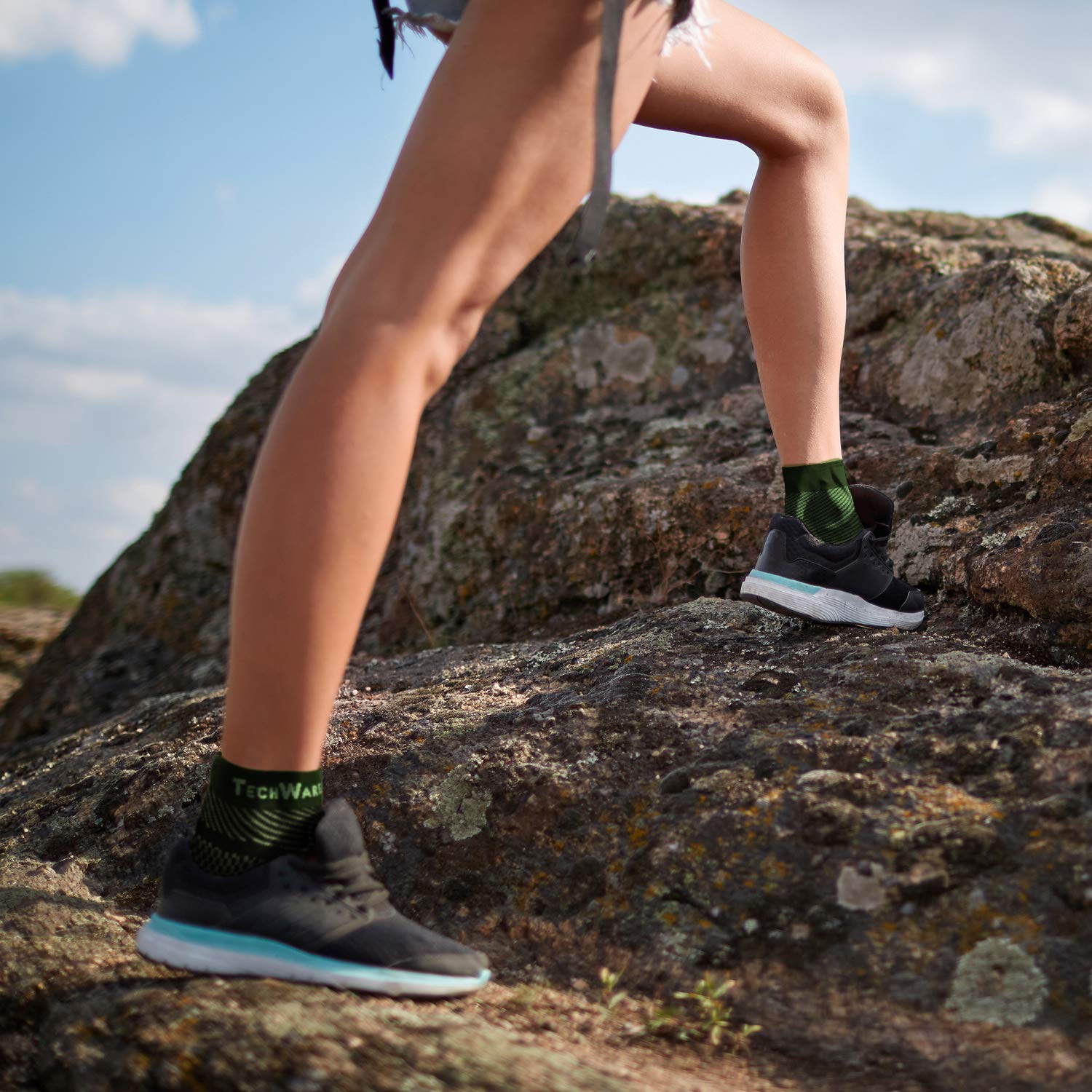 TechWare Pro Ankle Brace Compression Sleeve - Relieves Achilles Tendonitis, Joint Pain. Plantar Fasciitis Foot Sock with Arch Support Reduces Swelling & Heel Spur Pain. (Black/Green, S/M)