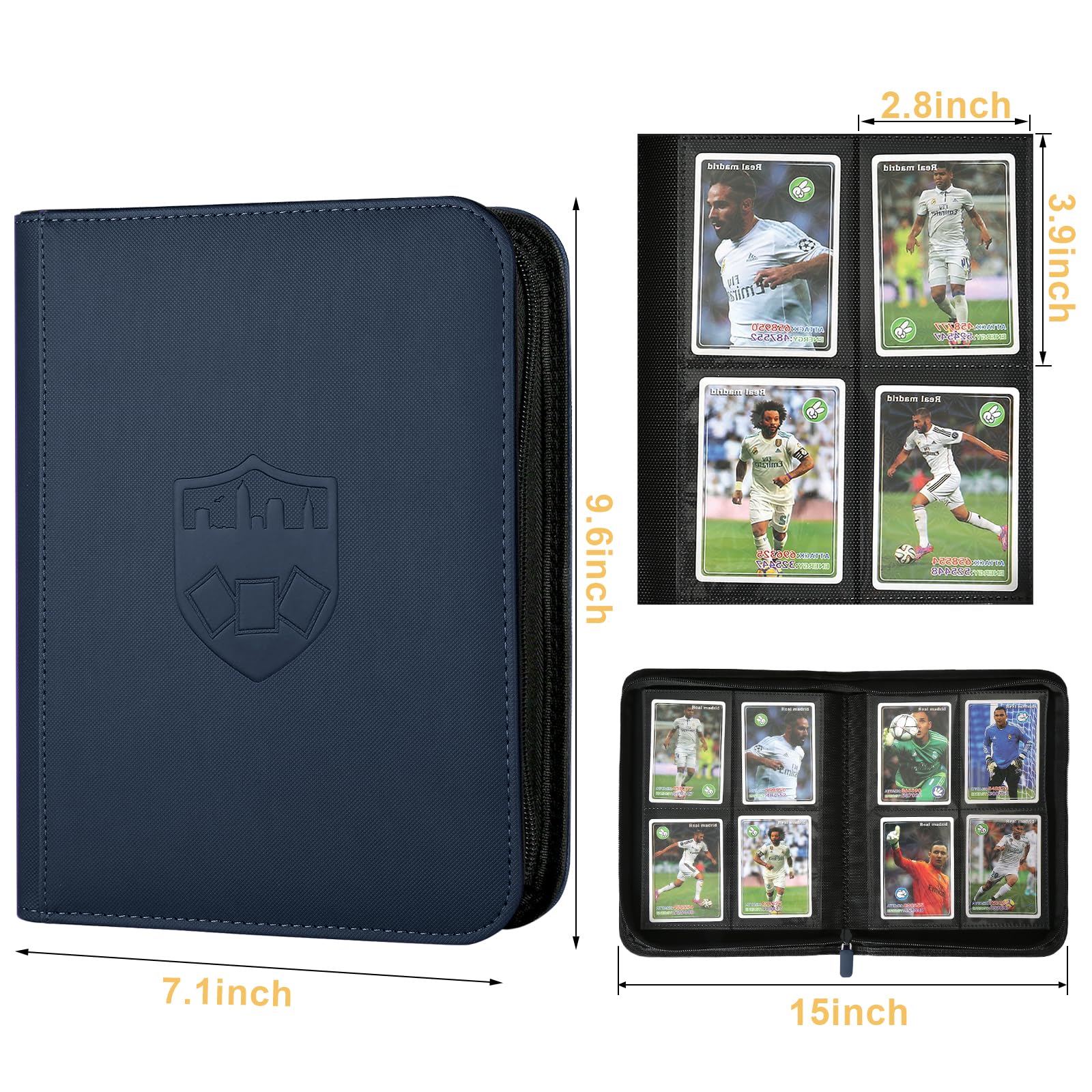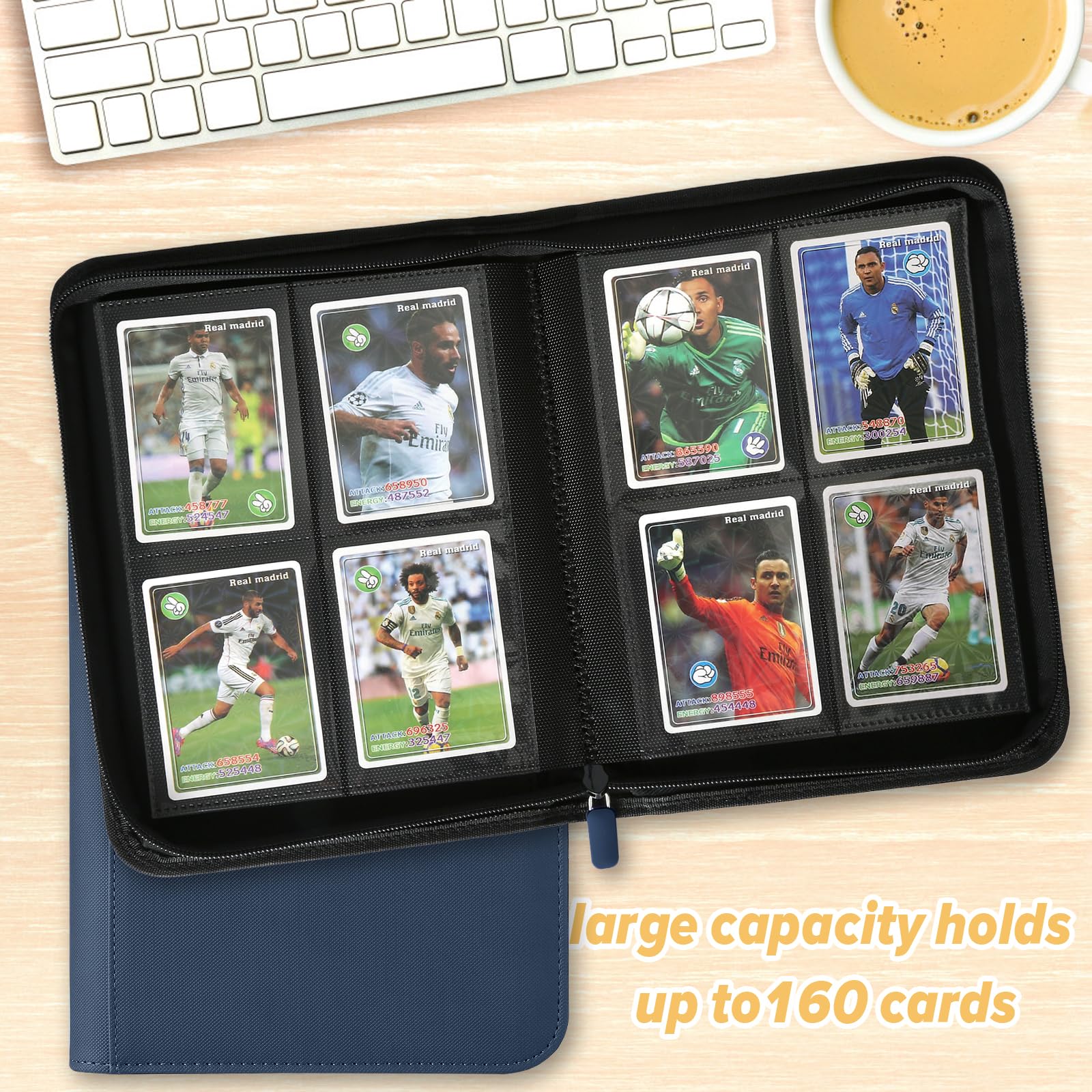 - 【Perfect Build】 Holds 160 trading cards with 20 pages 4-pocket bound to the spine, providing plenty of space to get all your cards organized.binder built without rings. No more worrying about rings damaging your cards, along with a zippered closure for extra protection.Side Loading designed to prevent cards from easily falling out.