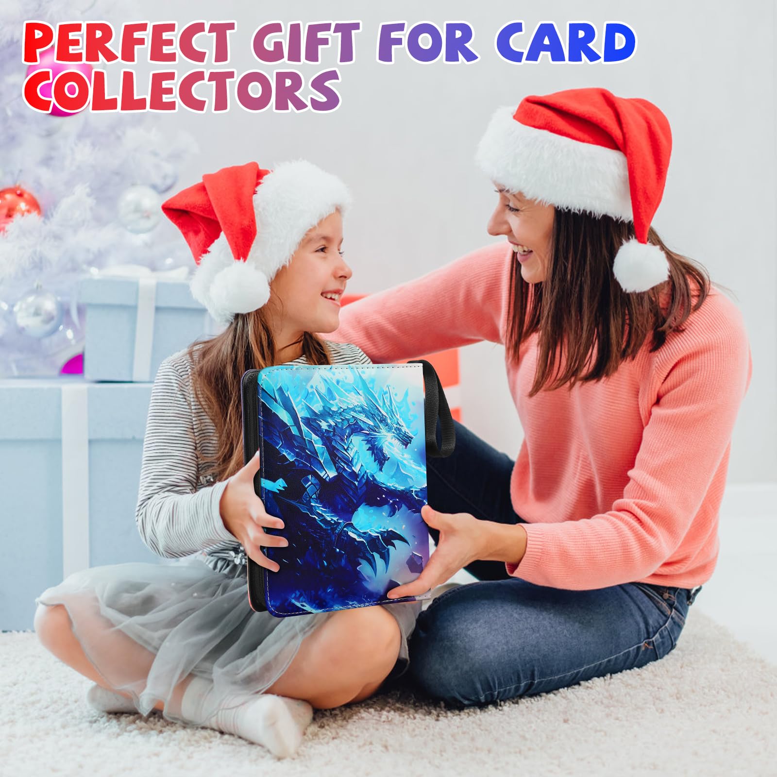- PREMIUM QUALITY AND BEAUTIFUL DESIGN: This premium trading card binder is designed to safeguard your valuable trading cards in pristine condition. Featuring a sturdy cover embossed with vibrant, cool graphics. The top-loading pockets help prevent cards from slipping out, providing a secure hold that's perfect for both display and transport.