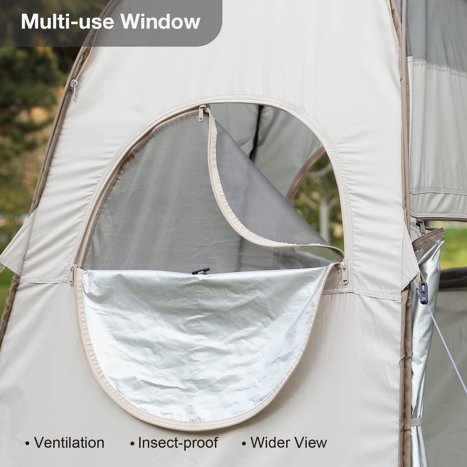 - 【MULTI-USE WINDOWS】 This window has great function, the netting top and window not only give you a wider view, but also let the cool air in and keep insects out, while the outer layer could protect your privacy when closed. Get the perfect outdoor experience with this camping shower tent!