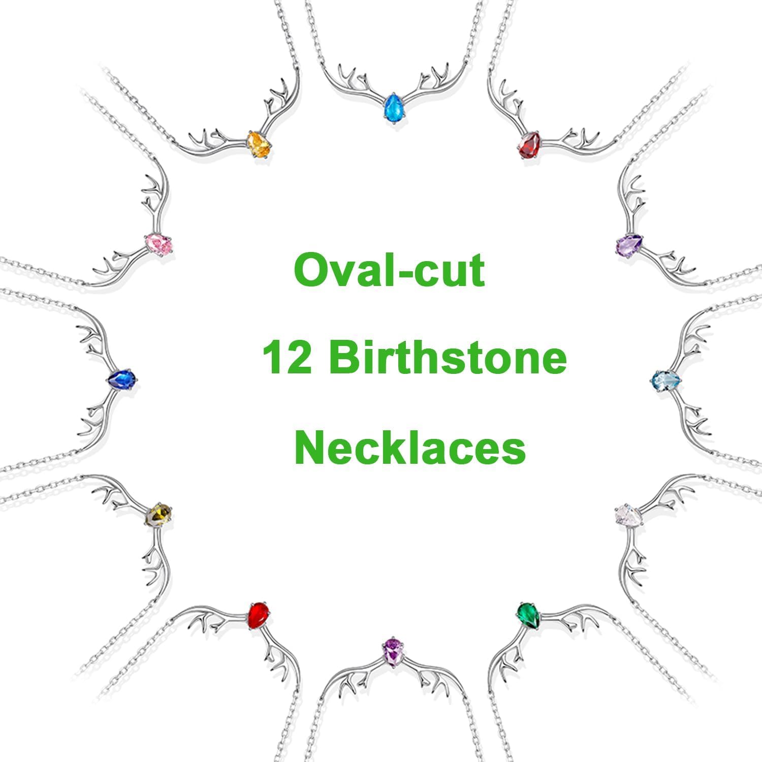 - Birthstone Choker Necklace : pear-cut simulated cubic zirconia birthstone inlaid on deer head, shiny and sparkling pretty necklace for women.