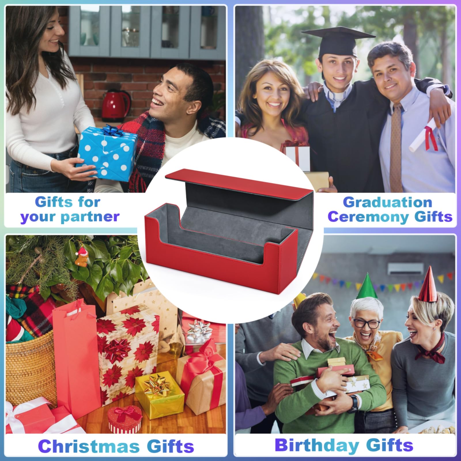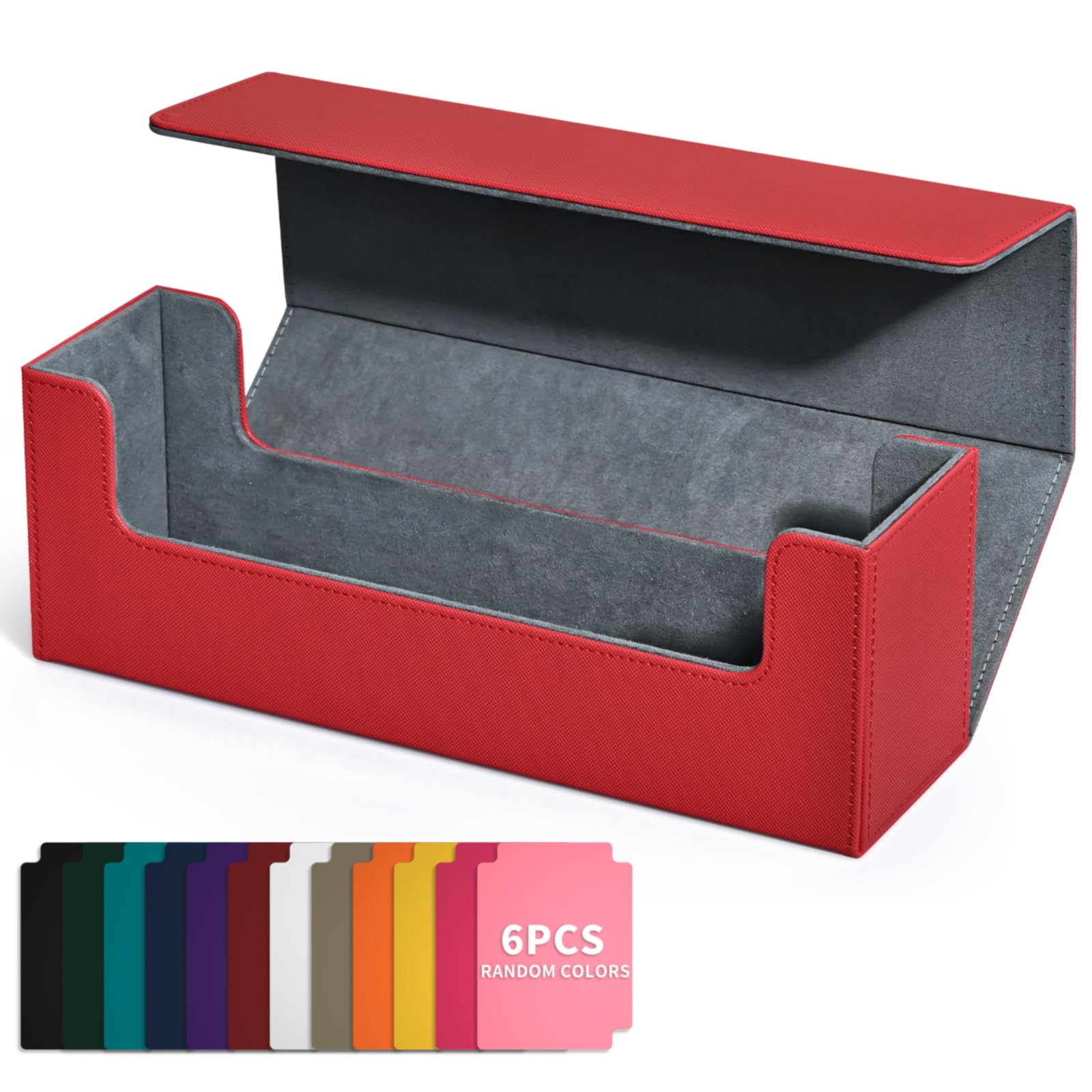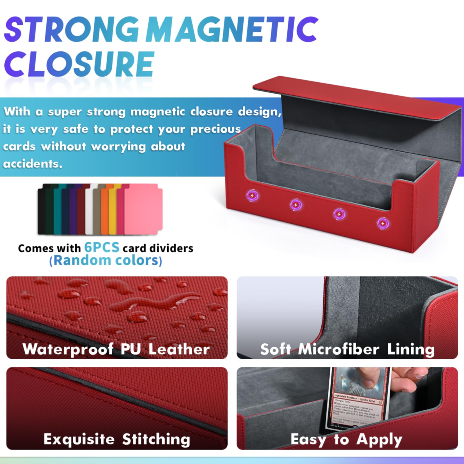 UAONO Card Storage Box for Trading Cards, 600+ PU Leather Commander Card Deck Case, Magnetic Closure Card Holder Fits for Magic Game Cards (Red)
