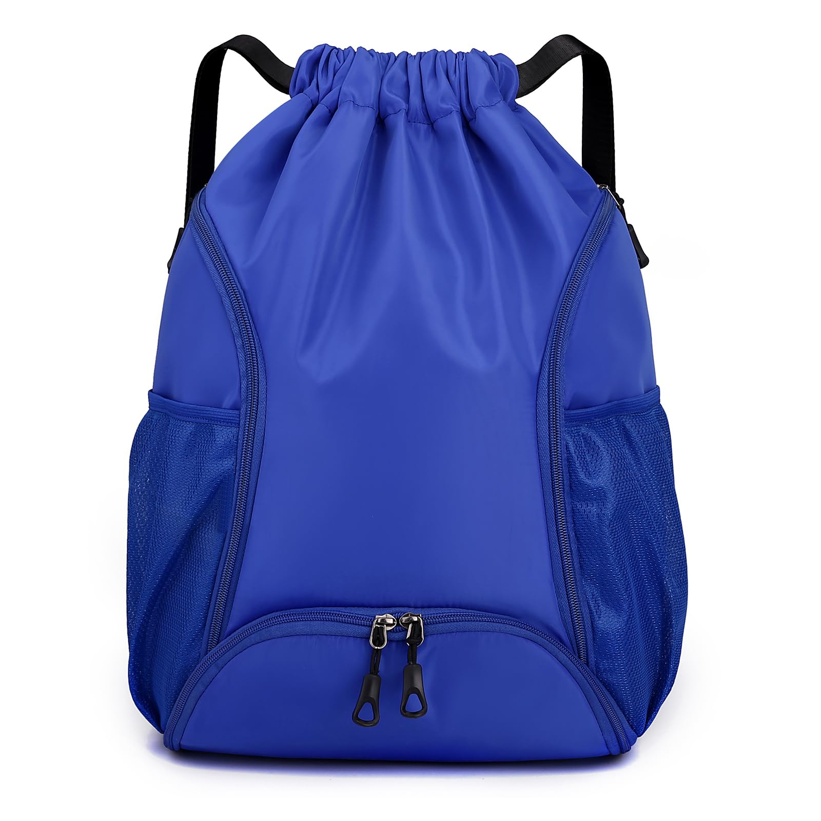 Valleycomfy Sports Gym Bag Drawstring Backpack with Shoes Basketball Bag and Two Water Bottle Holder,Drawstring Backpack for Beach, Pool and Travel,Sapphire Blue