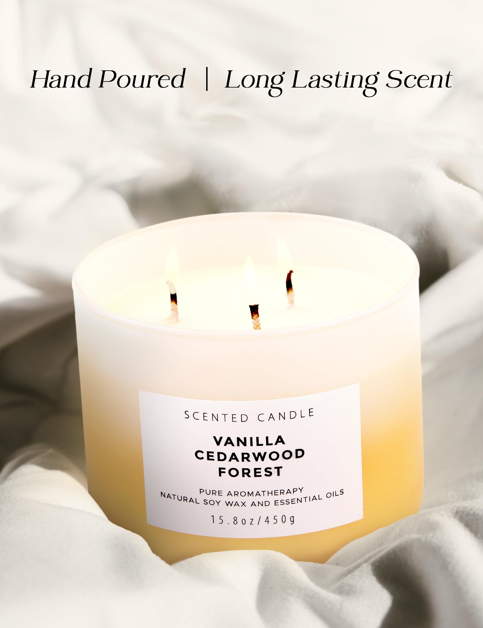 Vanilla Cedarwood Forest 3 Wick Scented Candle | Large Soy Candles for Stress Relief 15.8 oz | Relaxing Aromatherapy Candle for Men & Women | Fresh Cozy Scent Long Lasting Candles for Home Clean Burn