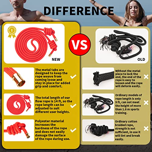 - [High-quality Material] Our flow rope is made from safety rope that are woven from high-strength polyester material, using a double weave process. It’s strong and durable, and won't break with wear and tear. The rope has a designed metal cap at both ends, which beautifies the rope and increases its texture. It is a good choice as a fitness gift for men and women.