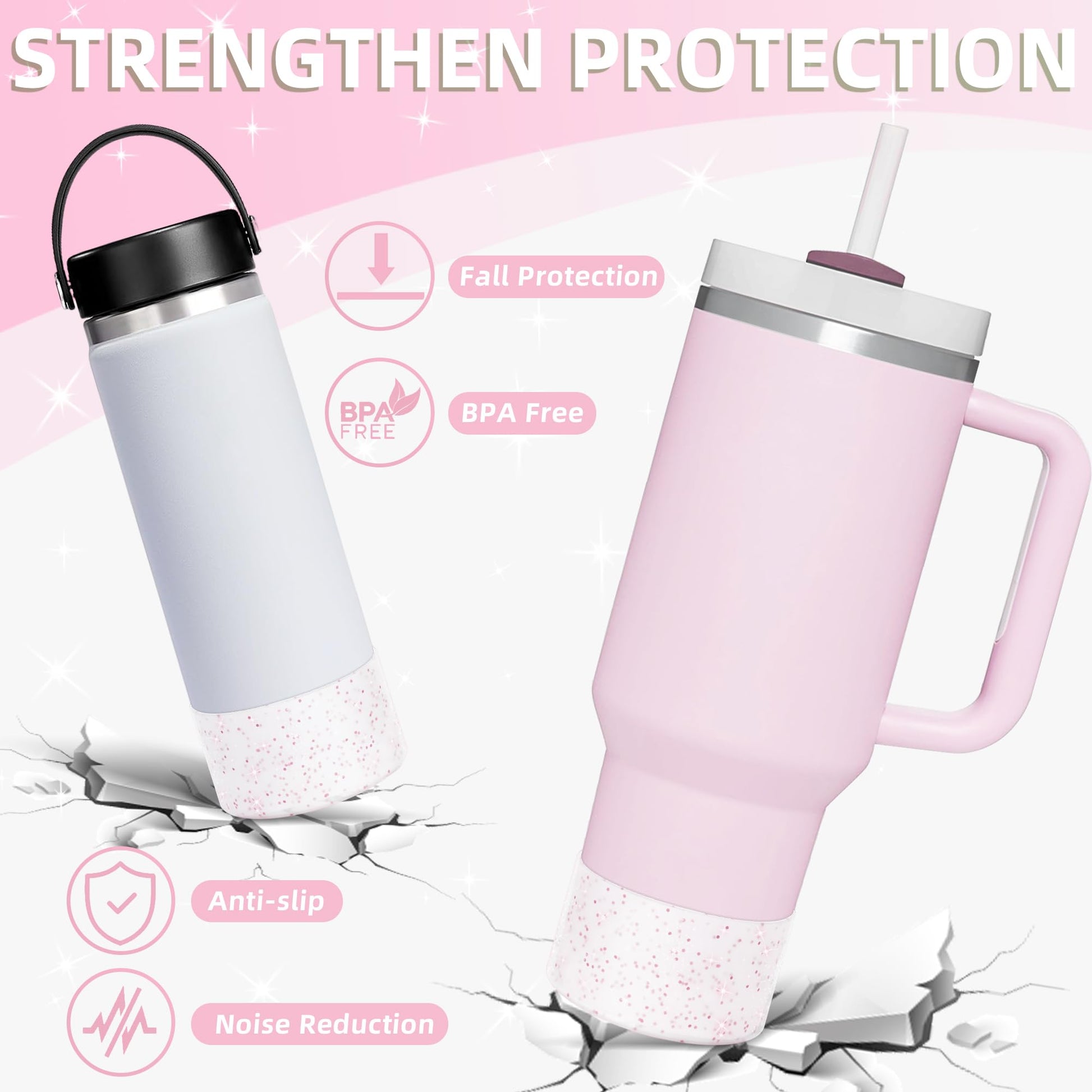 - ✨Bling-bling: Compared to ordinary boots, glitter boots not only protect your water bottle from noise, dents, and damage, but they also make your water bottle appear shiny, creating a sparkling look for your favorite water bottle!