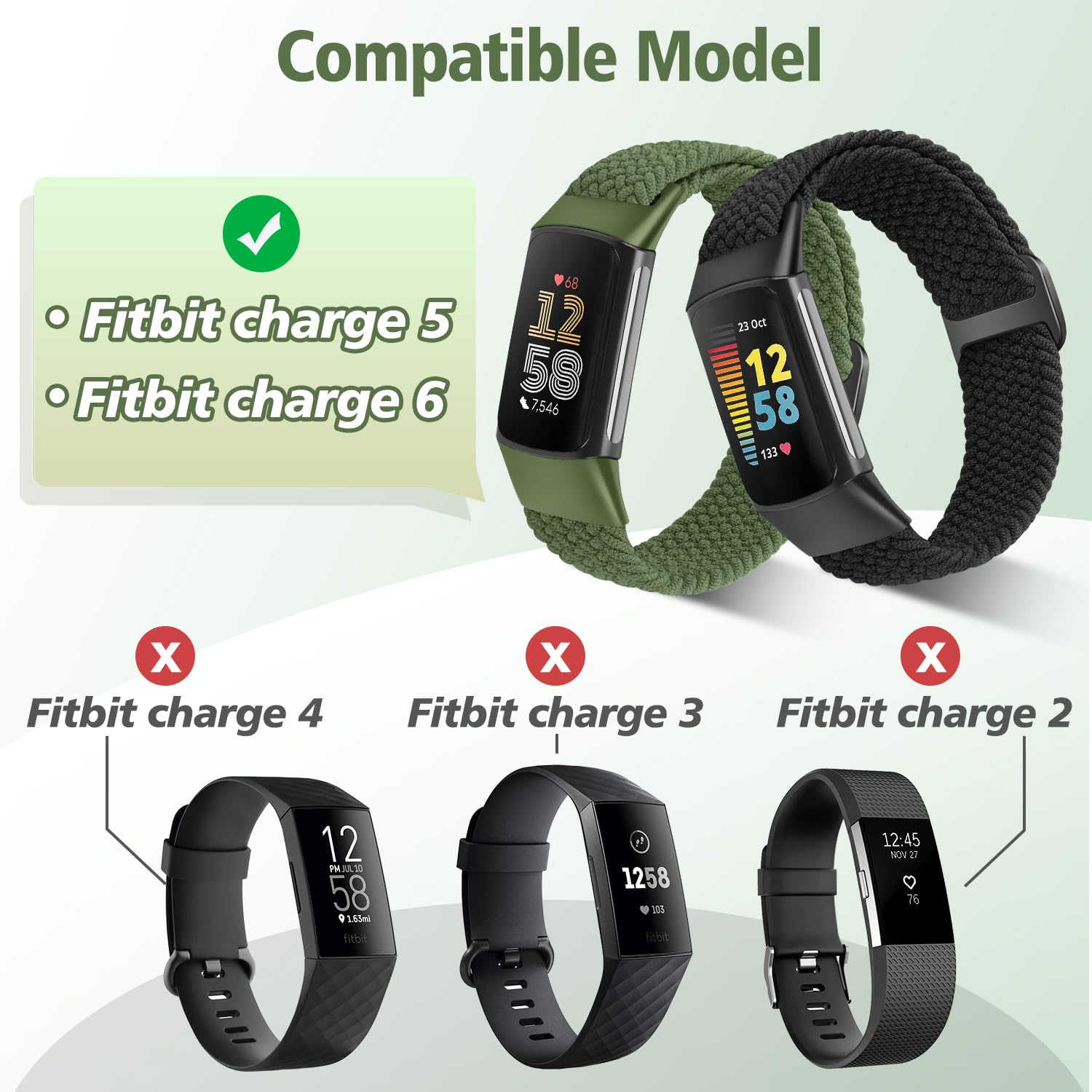 - COMPATIBILITY --- VNDAPT elastic braided replacement bands are only compatible with Fitbit Charge 5/Fitbit Charge 6. Does not compatible with other models.