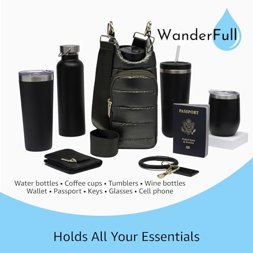 WanderFull Original Crossbody HydroBag | Quilted Water Bottle Carrier | Puffer Tote Tumbler Holder with Pockets for Purse, Phone & Accessories | Carry Travel Essentials (Army Green)