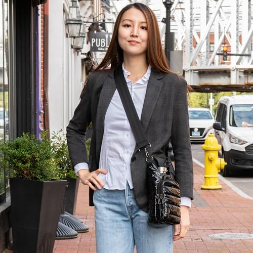 WanderFull Original Crossbody HydroBag | Quilted Water Bottle Carrier | Puffer Tote Tumbler Holder with Pockets for Purse, Phone & Accessories | Carry Travel Essentials (Black Glossy/Black Strap)