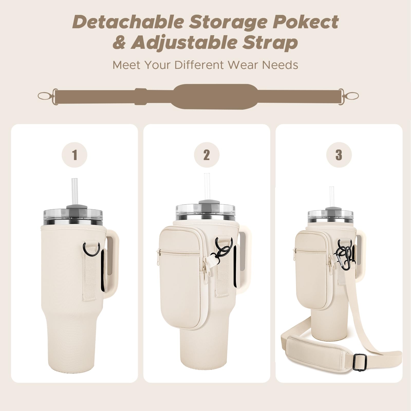 - Adujstable Shoulder Strap for Easy-carrying: This stanley cup holder boasts a detachable,adjustable shoulder strap, easily adjustable between 27.5' and 50' to accommodate various body shapes. Easy-to-use buckle,padded sponge,this water bottle bag with strap for stanley 40 oz tumbler is designed for hassle-free carrying.