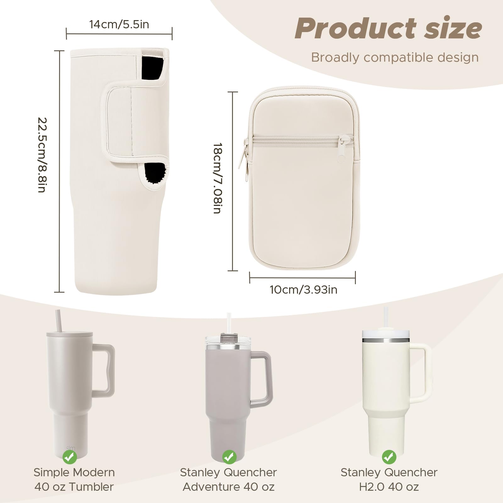 Universal Fit: Designed to accommodate a 40 oz tumbler sizes. Secure your favorite brand, be it Stanley,Simple Modern tumbler.