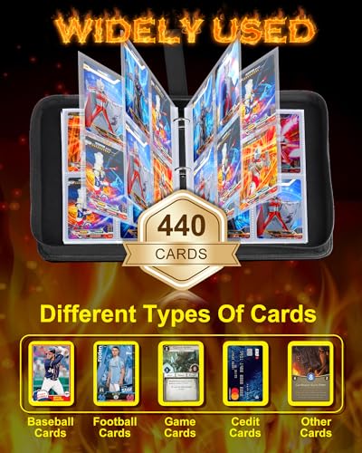 - Capacity For 440 Cards - Trading Card Binder can hold up to 440 cards, with 4 pockets on each side, allowing cards to be stored on both the front and back. It includes 55 sheets (cards not included). The three metal rings make it easy for you to effortlessly add or remove sleeves. It's more than just a binder; it's your command center, ensuring each card finds its perfect place. It is recommended to store fewer than 400 cards to prevent bending caused by the binder's bulging.