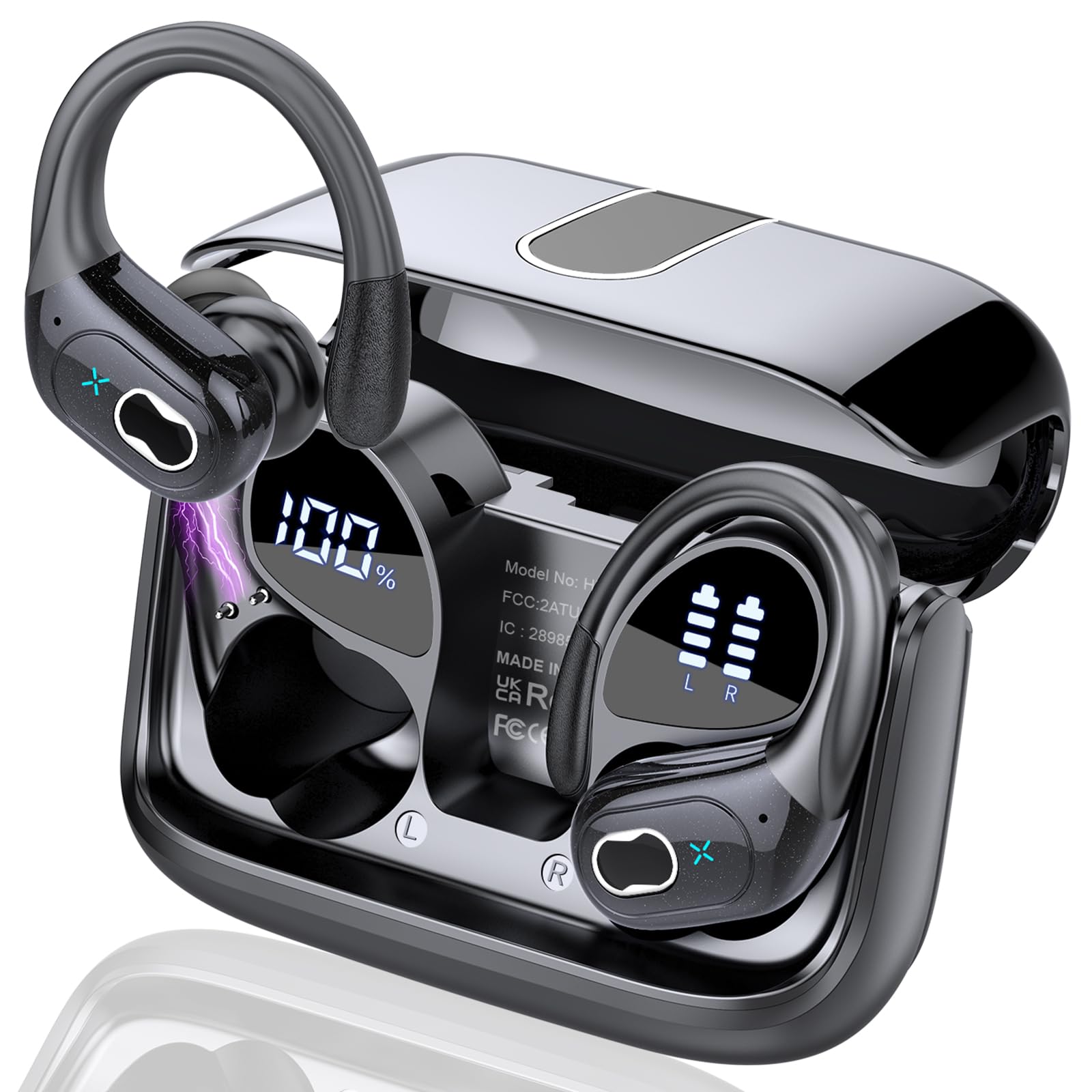 - 75 Hours Playtime and Dual LED Display: Running headphones provides up to 15 hours continuous using time on a single charge, portable charging case can charge the earbuds for 5-6 times, giving 75 hours of a total playtime. Whether on the road or in daily life, it will provide unparalleled convenience and smart experience. The dual LED display on earphones accurately display the remaining power of charging case and the charging progress of Wireless ear buds.