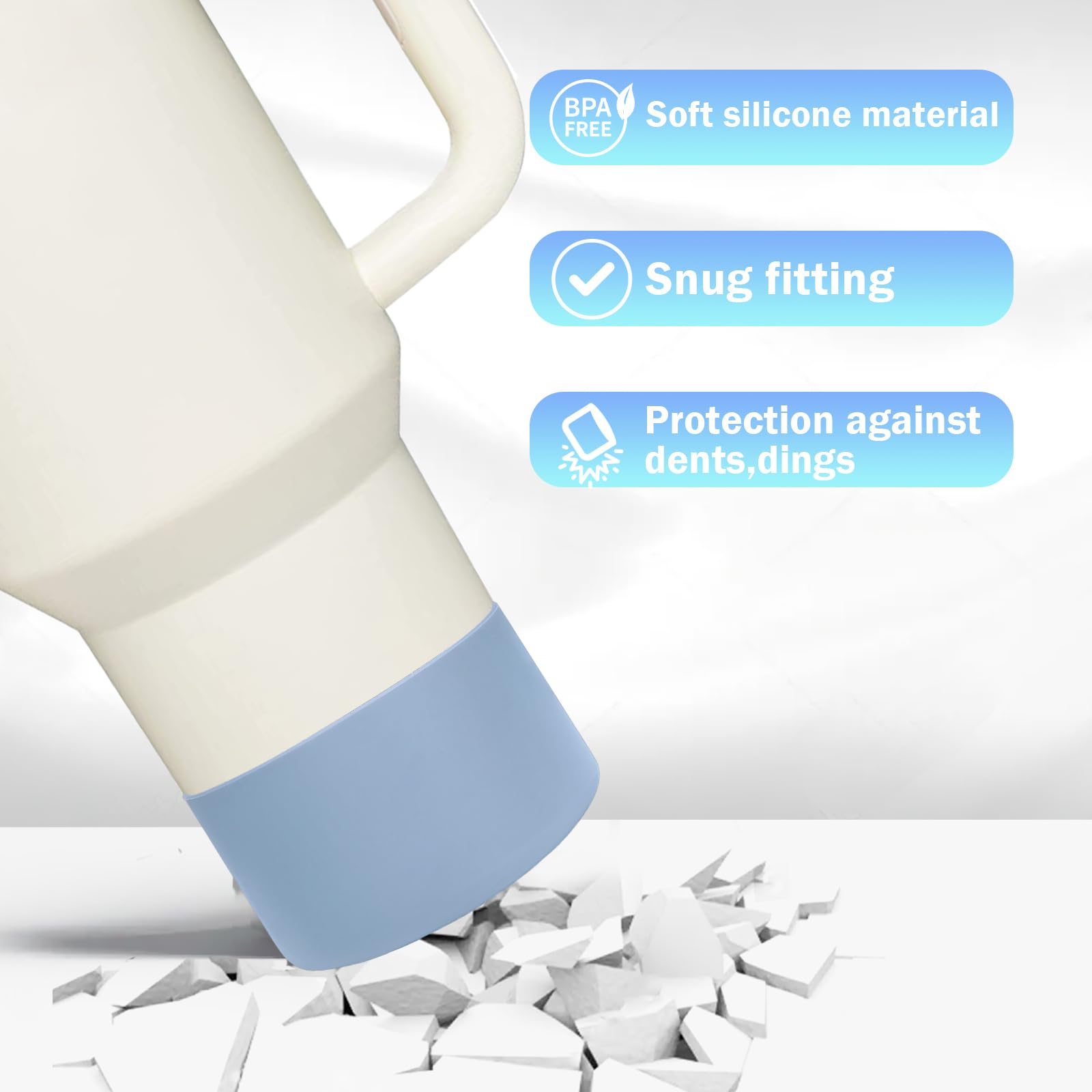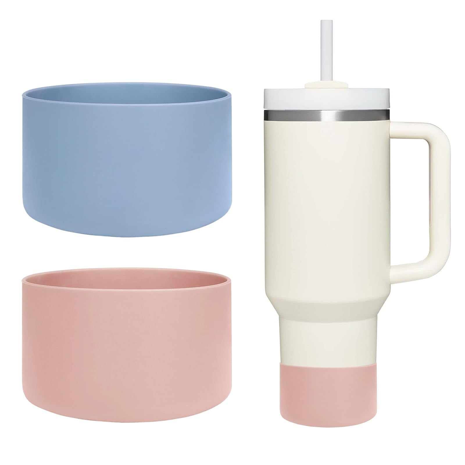 WK IEASON 2 Pcs Tumbler Bottom Protector Boot for Stanley Quencher Adventure 40oz & Stanley IceFlow 20oz 30oz and Compatible with Hydro Flask Water Bottle 12oz 21oz 24oz (Chambray/pink dusk)