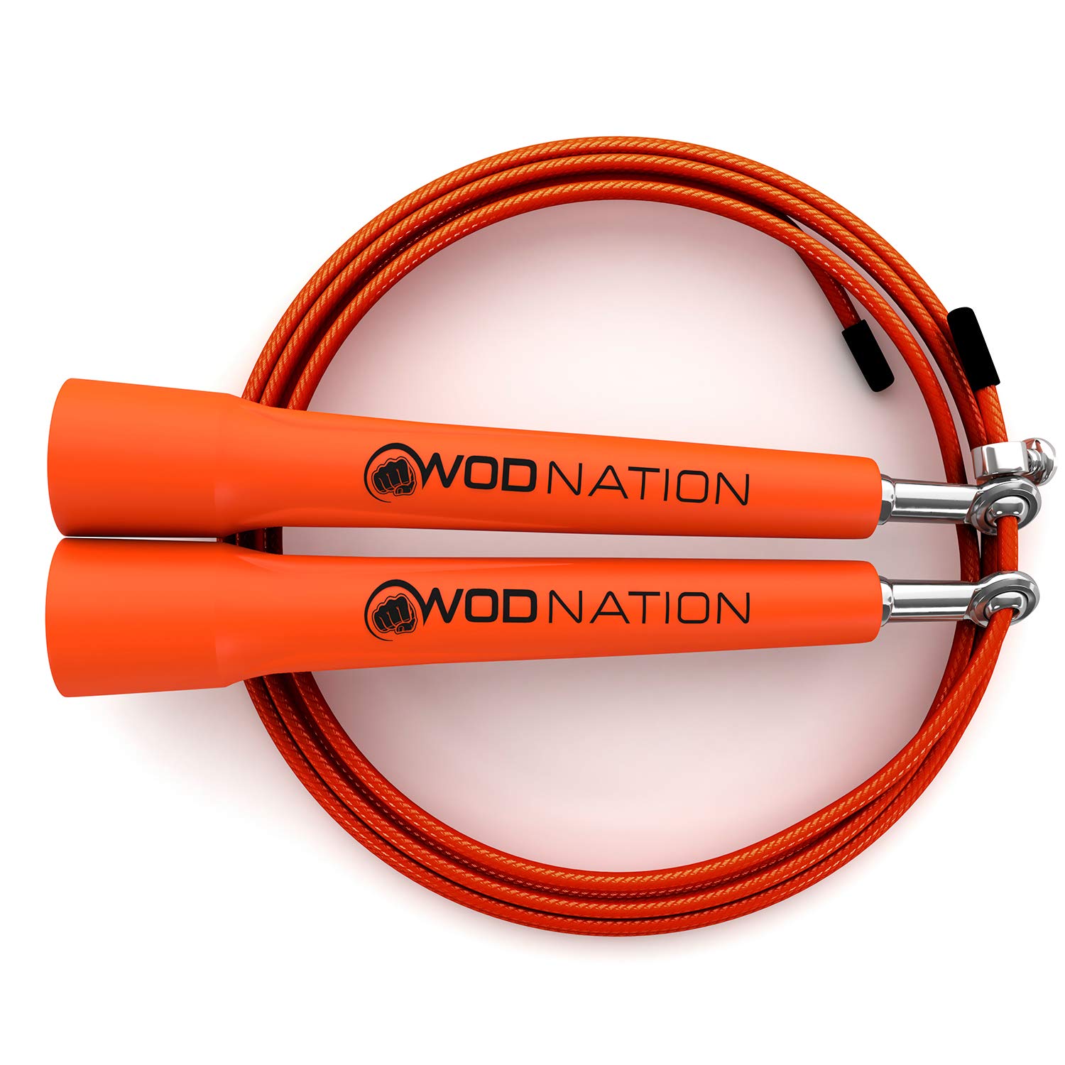 WOD Nation Adjustable Speed Jump Rope For Men, Women & Children - Blazing Fast Fitness Skipping Rope Perfect for Boxing, MMA, Endurance - Orange