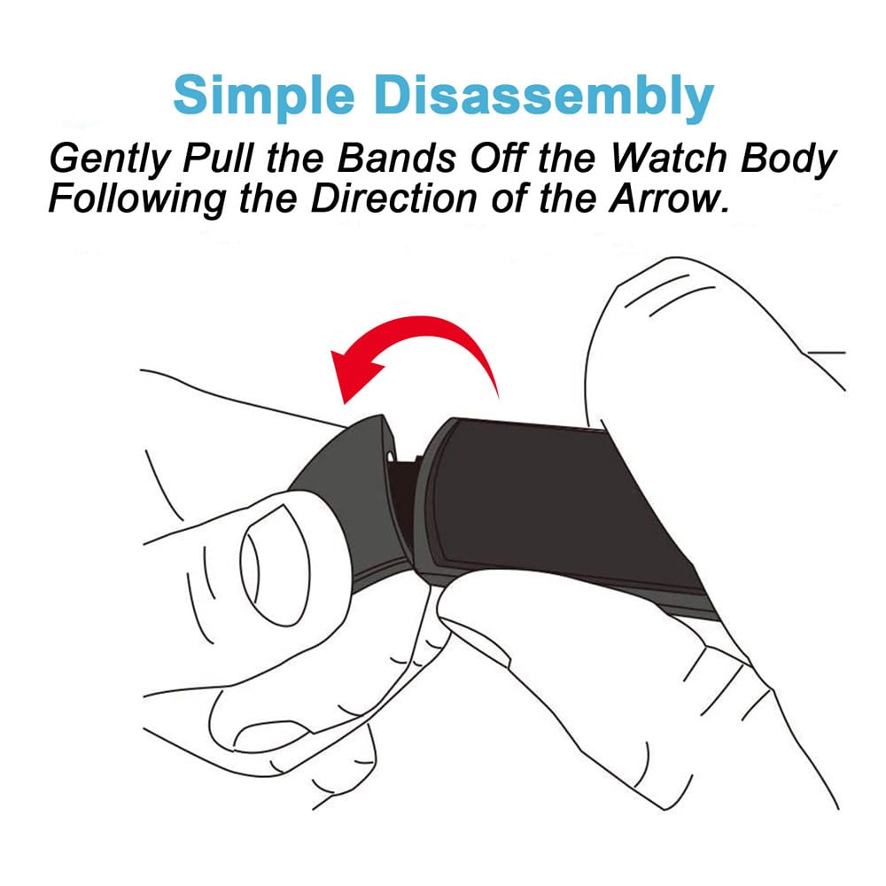 - ✅Simple Disassembly: No tools are needed. Just following the direction of the arrow, gently pull the bands off the tracker and push the replacement band in. It only takes 3 seconds to remove and assemble.