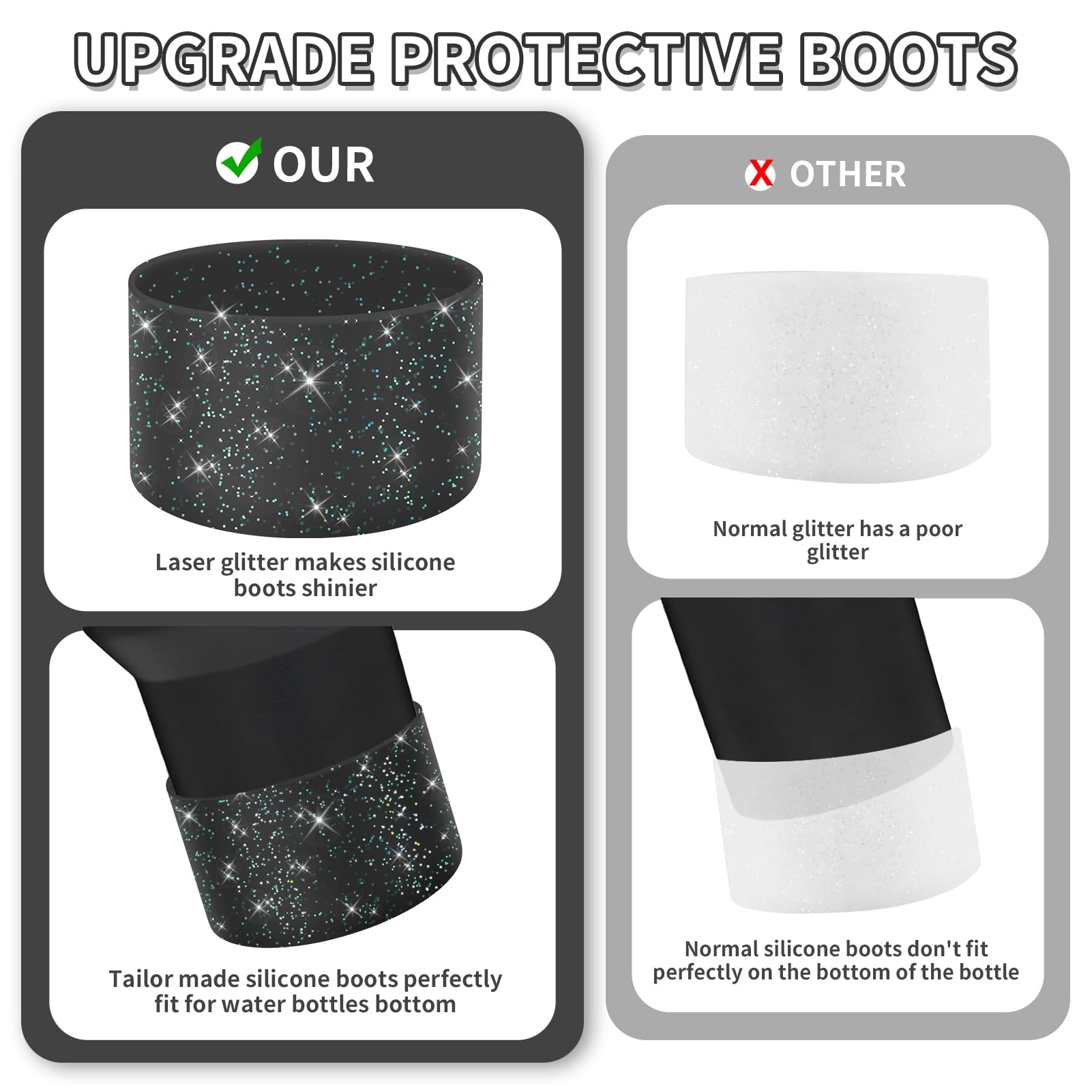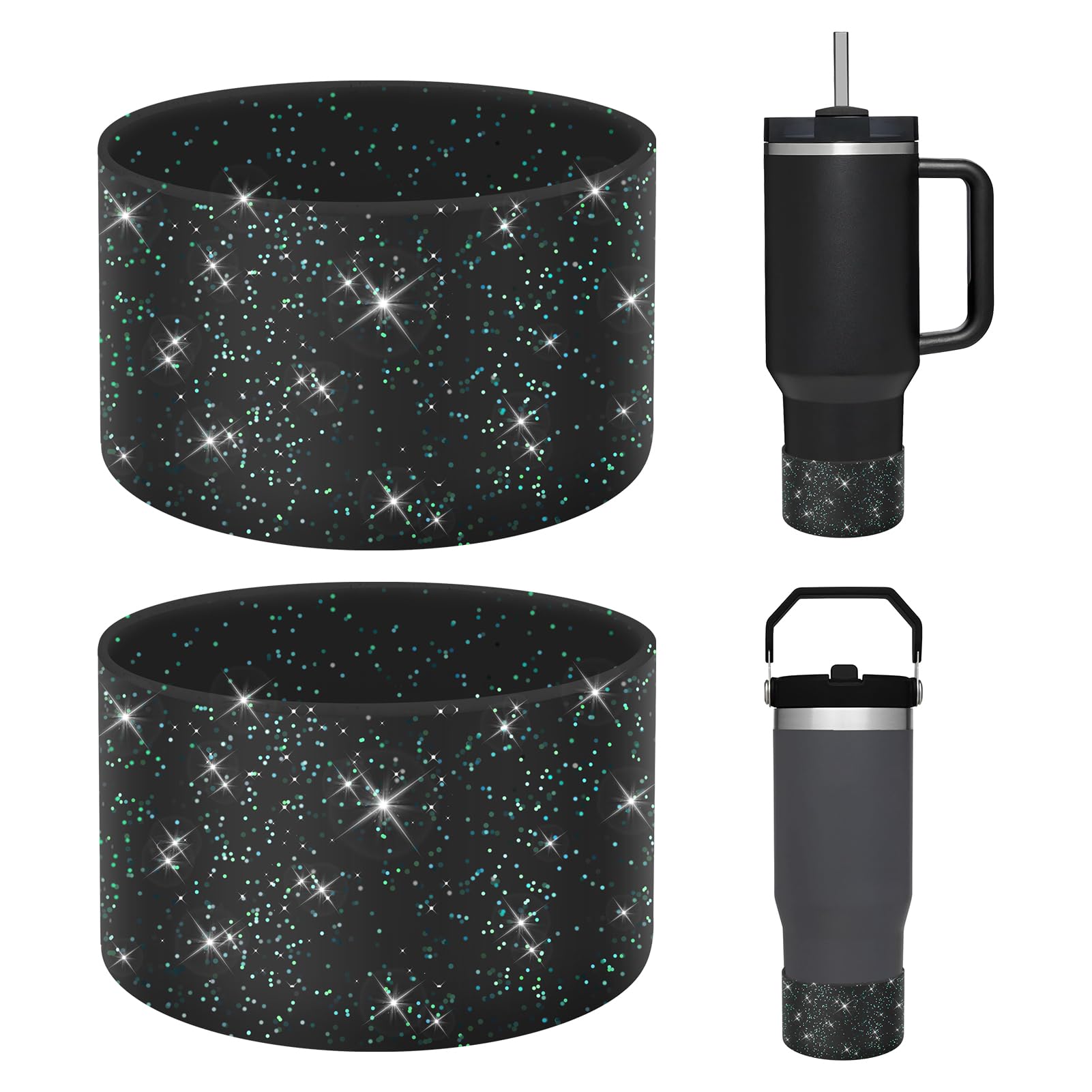 WUQID 2 Pack Bling Silicone Boot Compatible with Stanley Quencher Adventure 40oz & Stanley IceFlow 20oz 30oz, Reduces Dents Protective Silicone Water Bottle Bottom Cover Sleeve