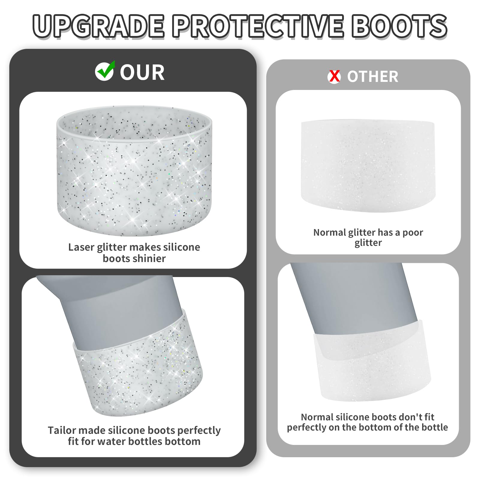 - SATISFACTION ASSURANCE: We take pride in our high-quality Glittering Silicone Protective Boot and stand by its excellence. If you have any questions or concerns about our product, don't hesitate to reach out. Your contentment is our utmost priority