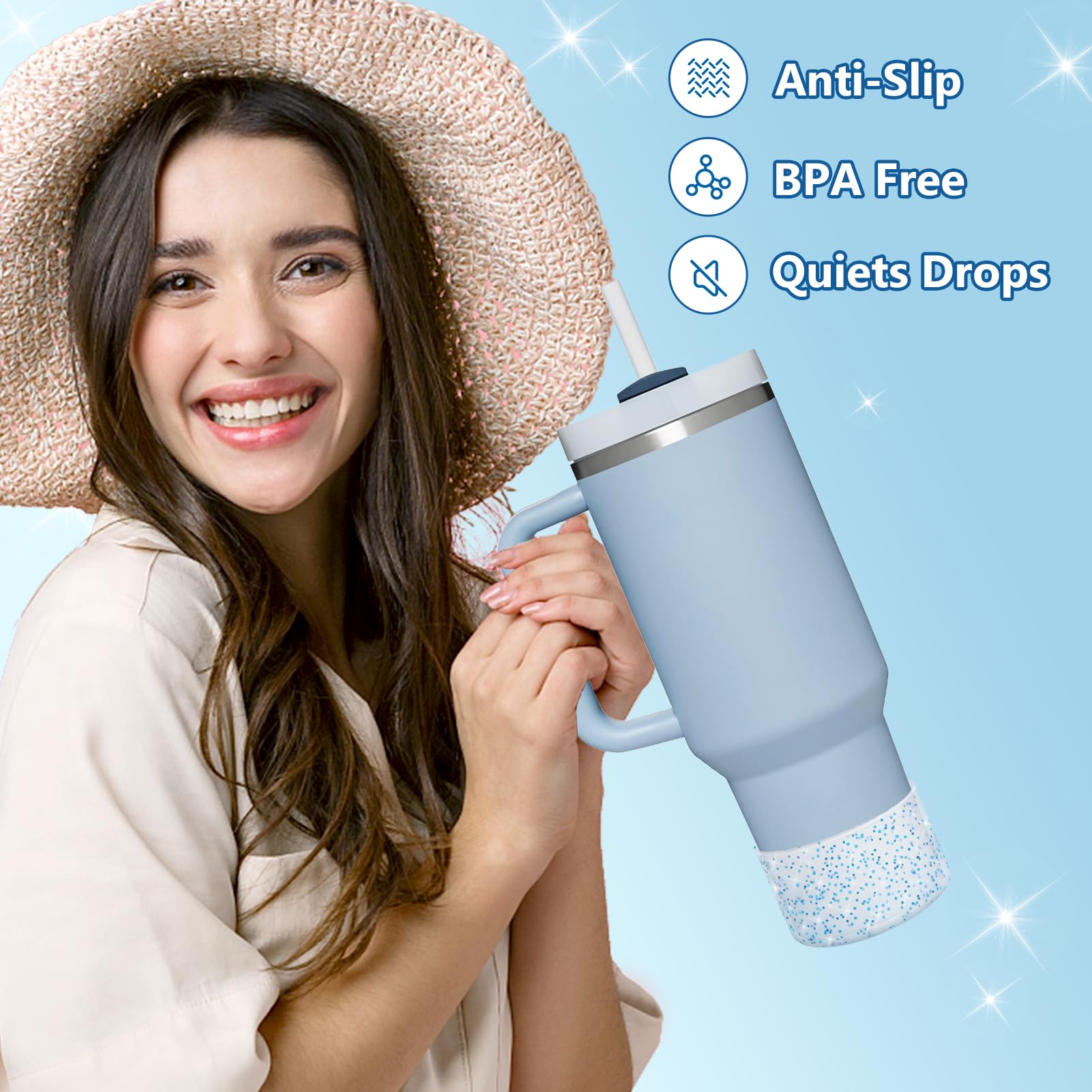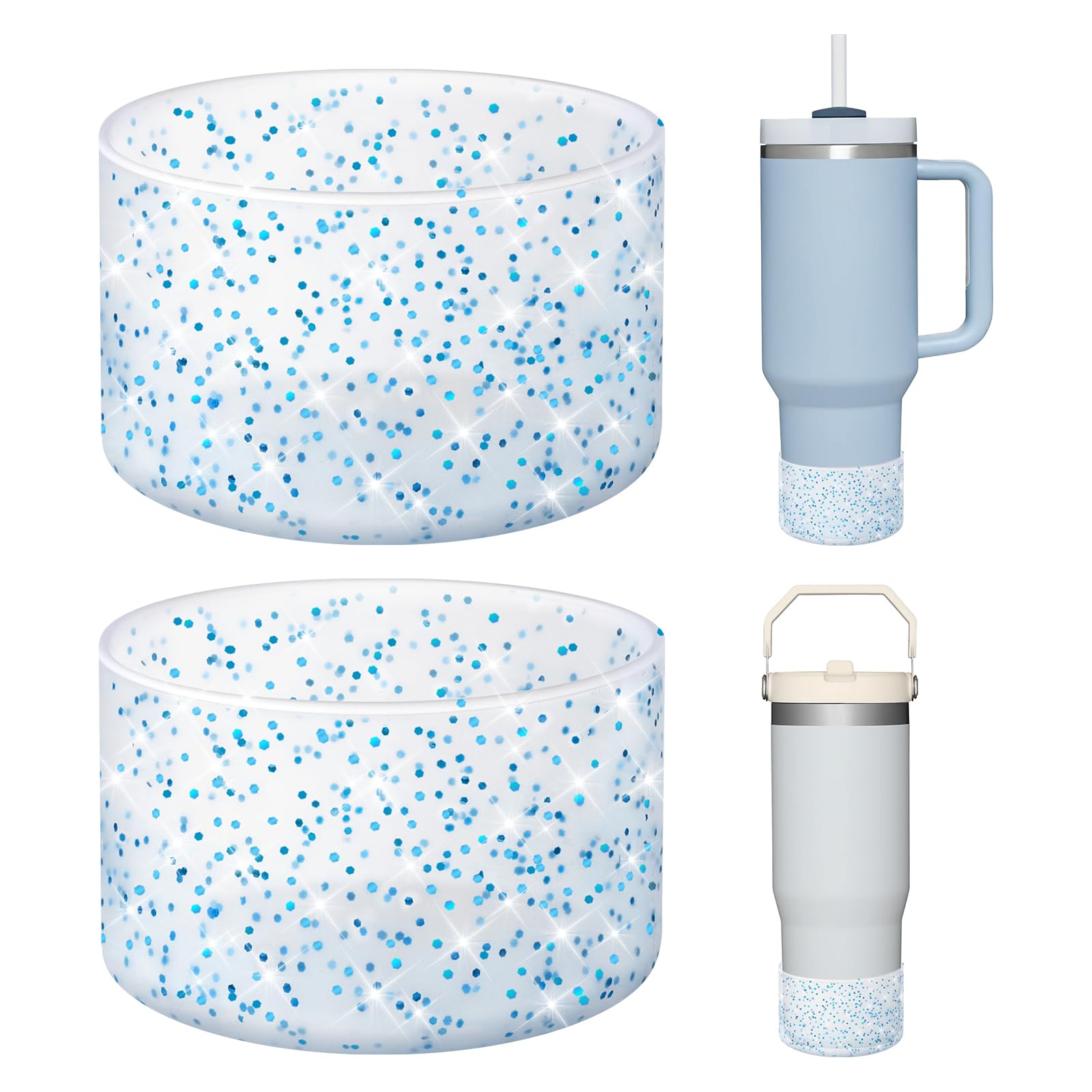 WUQID 2 Pack Bling Silicone Boot Compatible with Stanley Quencher Adventure 40oz & Stanley IceFlow 20oz 30oz, Reduces Dents Protective Silicone Water Bottle Bottom Cover Sleeve