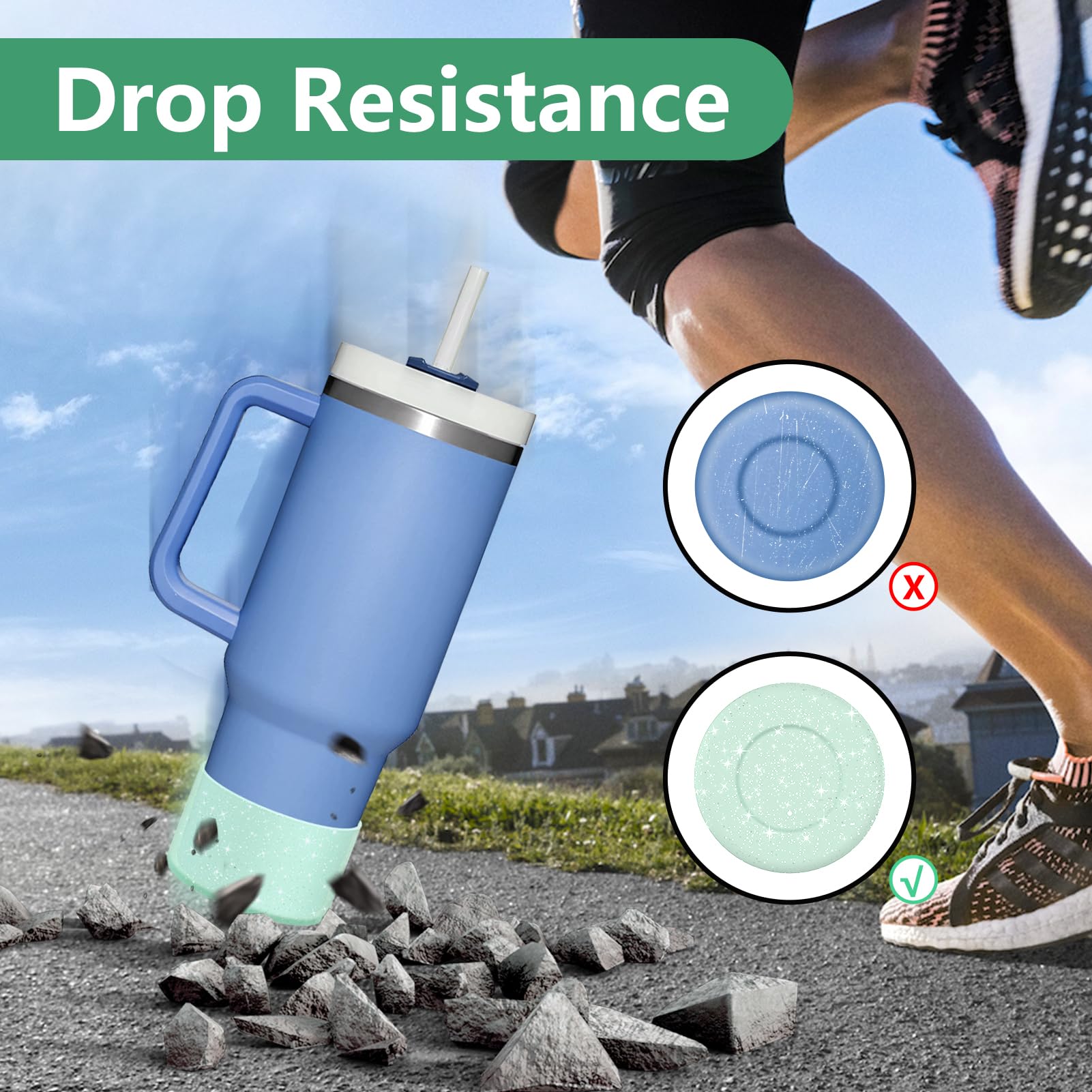 WUQID 2 Pack Bling Silicone Boot Compatible with Stanley Quencher Adventure 40oz & Stanley IceFlow 20oz 30oz, Reduces Dents Protective Water Bottle Bottom Cover Sleeve Compatible with Stanley Tumbler