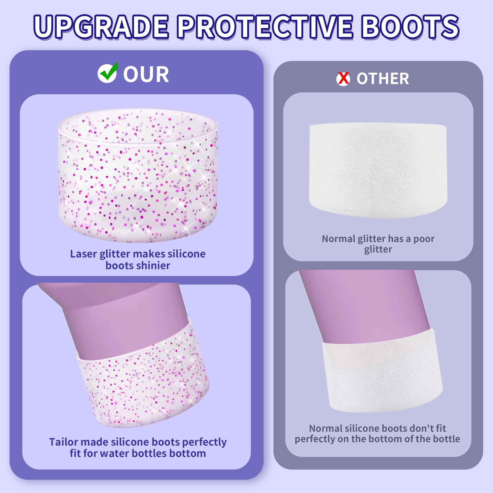 - ★ PREMIUM SHIMMER — Crafted with top-notch materials, our without BPA silicone boot boasts a radiant glitter finish. Thicker, anti-slip, and noise-reducing, it provides superior defense against dents and damage. Safeguard your valuable Cup in style.